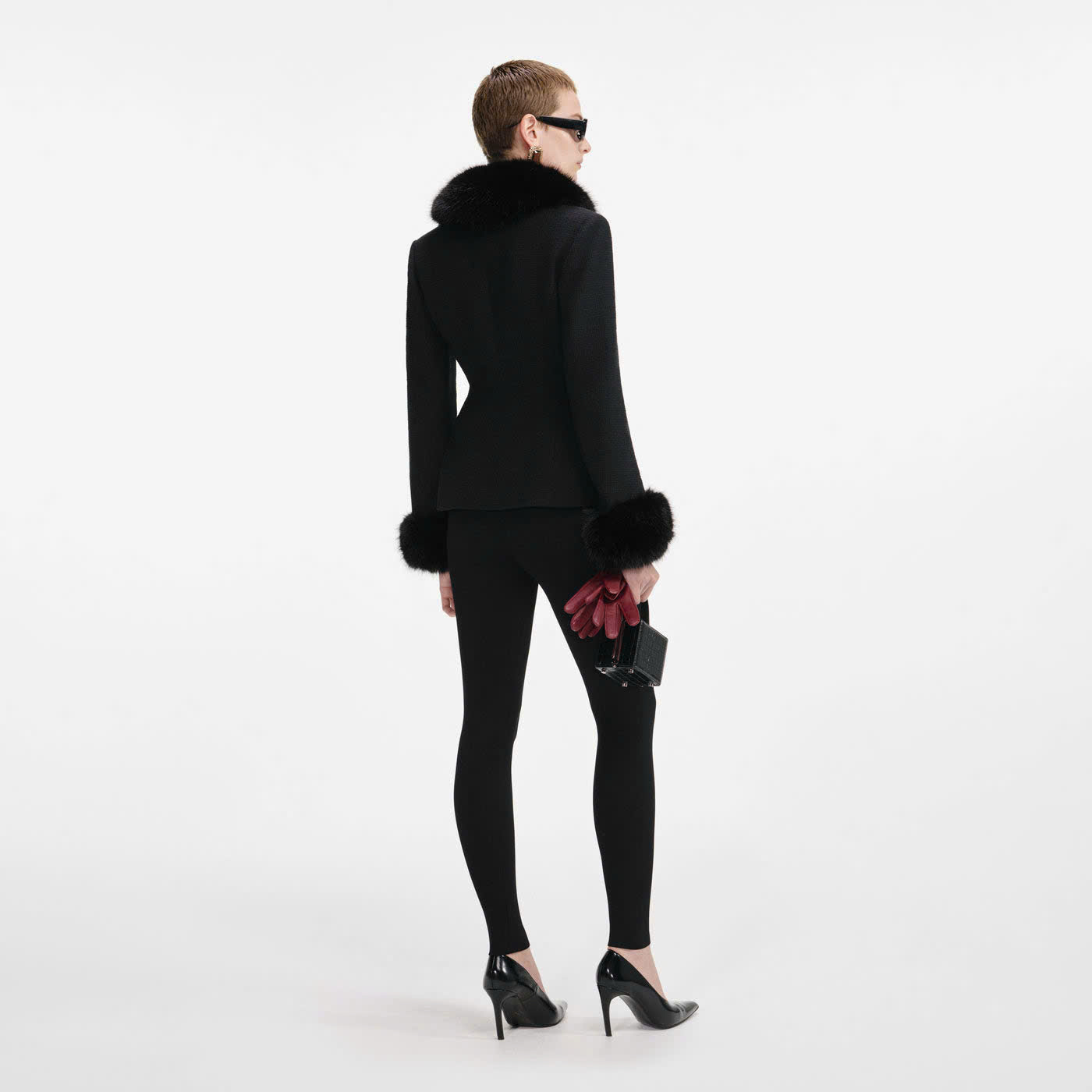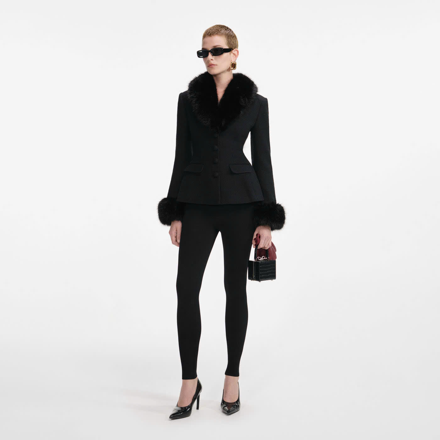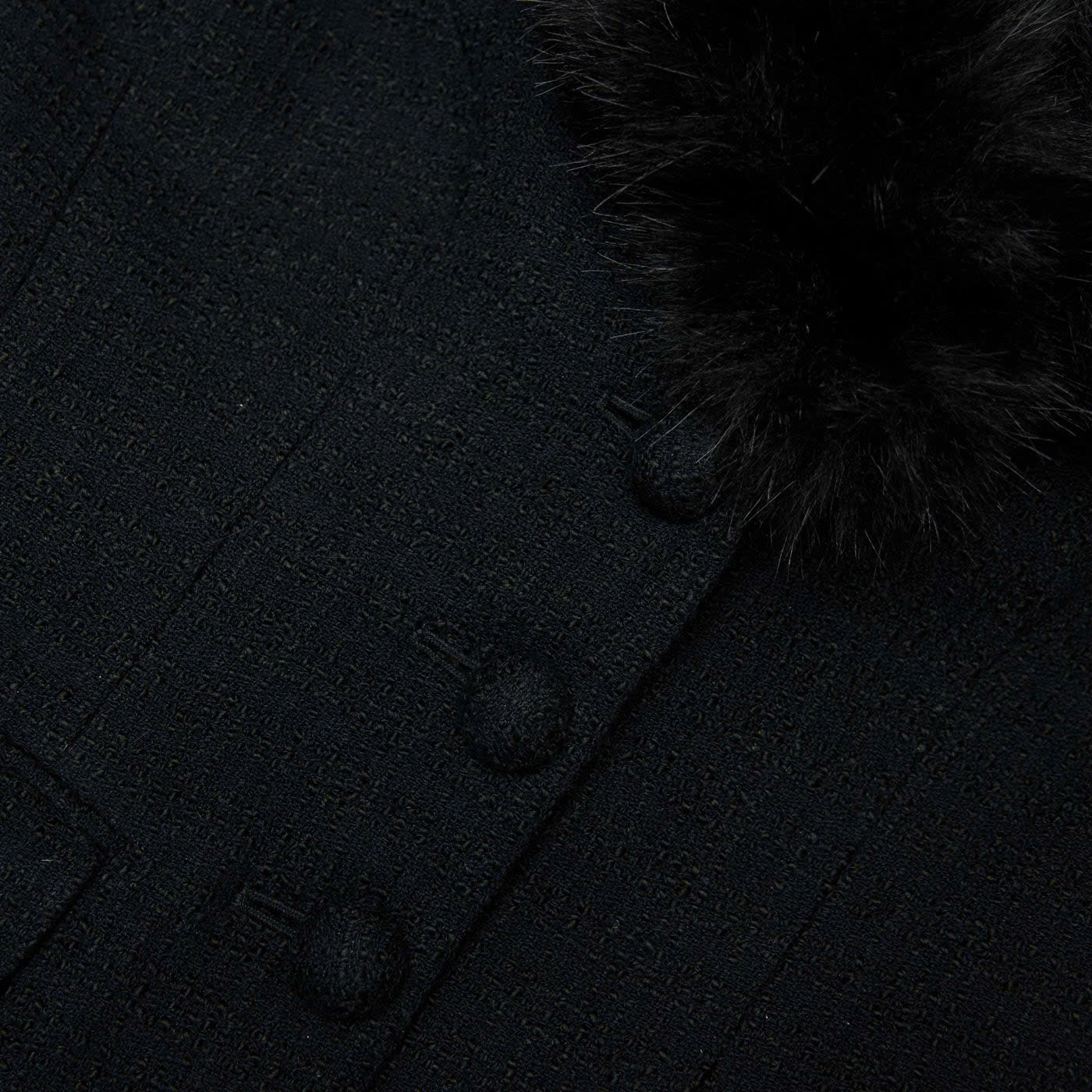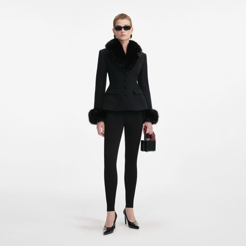 Kiểu dáng ôm sát Kiểu dáng này có độ co giãn tối thiểu. Khuy cài phía trước Cổ áo và cổ tay áo bằng lông giả có thể tháo rời. Chất liệu : 10% len, 27% acrylic, 26% cotton, 27% viscose.