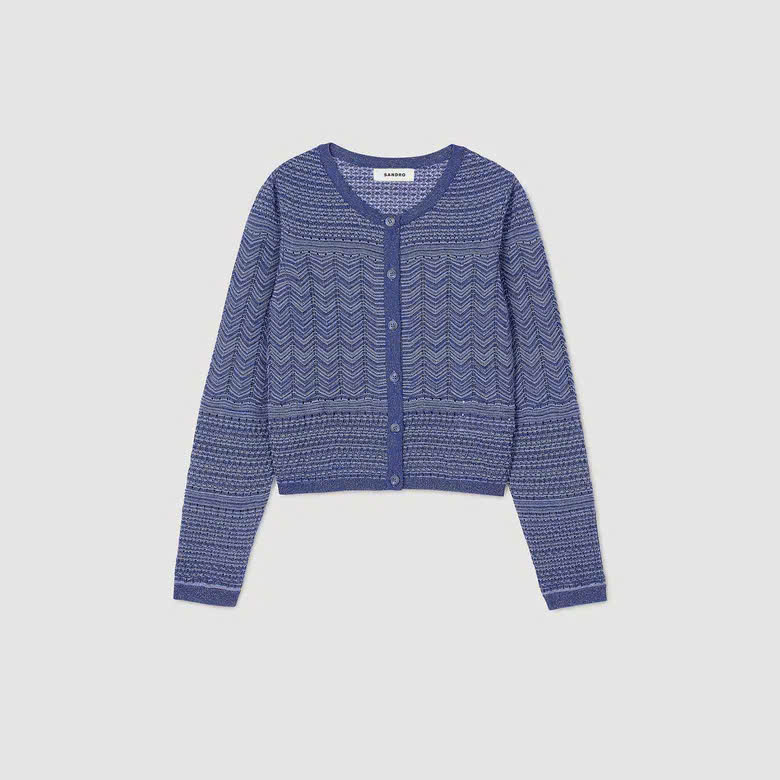 • Áo len crop nữ Sandro • Đan lấp lánh • Cổ tròn • Tay áo dài • Cài khuy