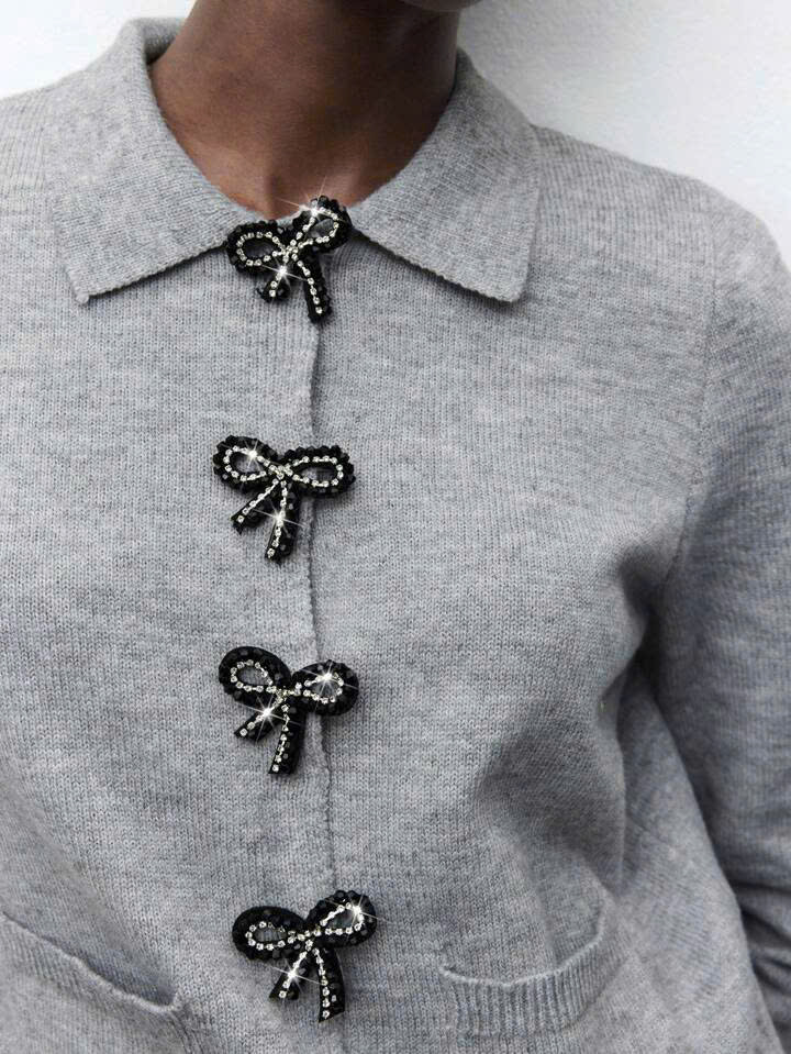 Áo cổ bẻ đính nơ 2 túi trước
