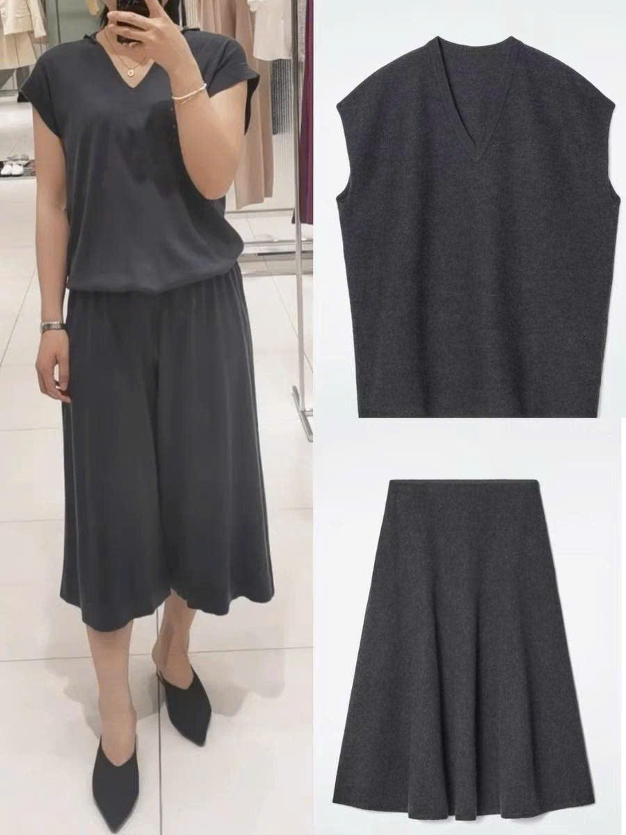 Áo gile COS cổ V dáng loose màu tàn