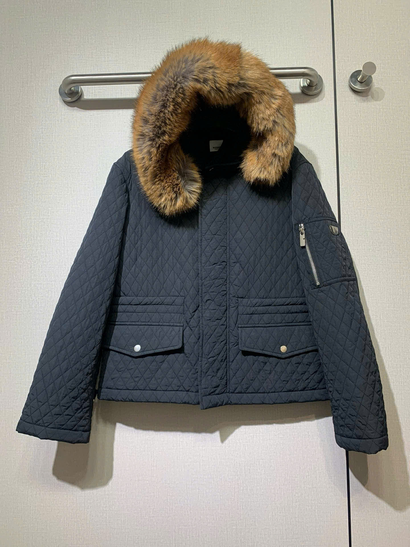 Áo khoác len Sandro dệt kim 2 hàng khuy viền trắng cổ tròn