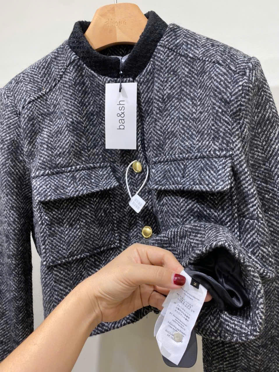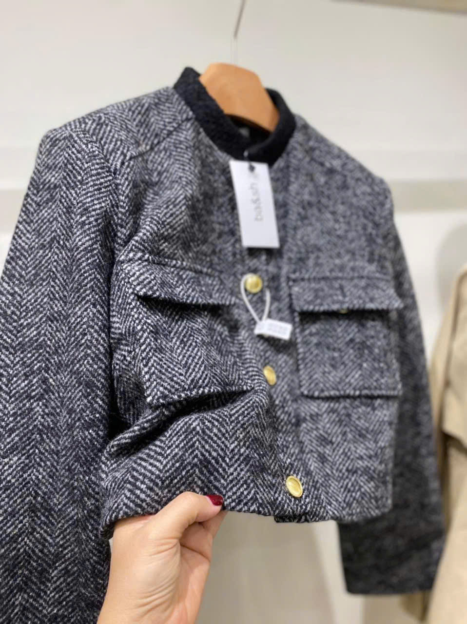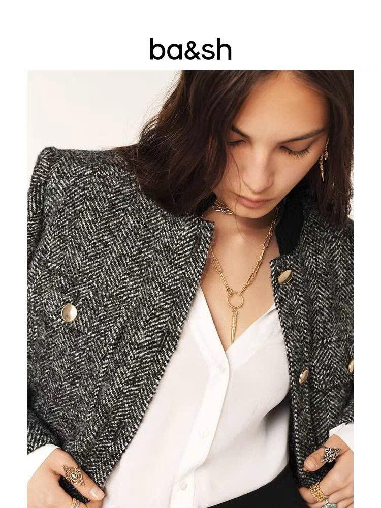 Áo khoác dạ BASH xương cá khuy vàng