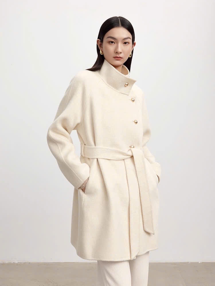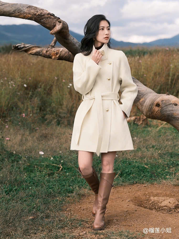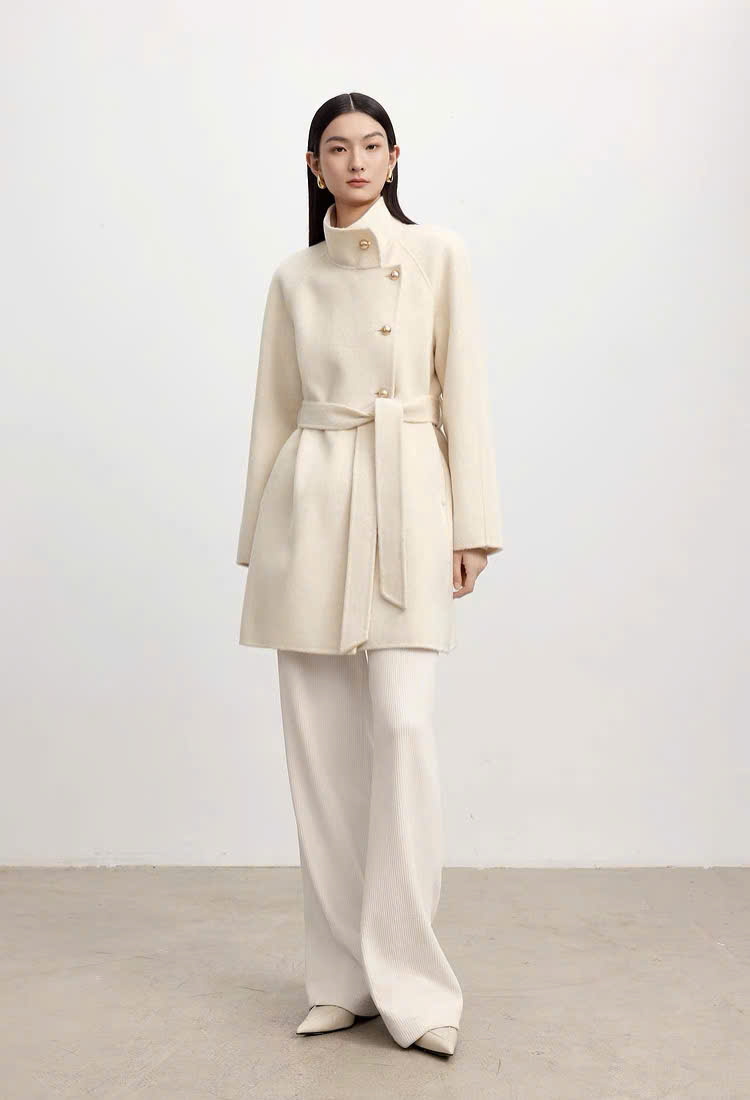 Áo khoác len Sandro dệt kim 2 hàng khuy viền trắng cổ tròn