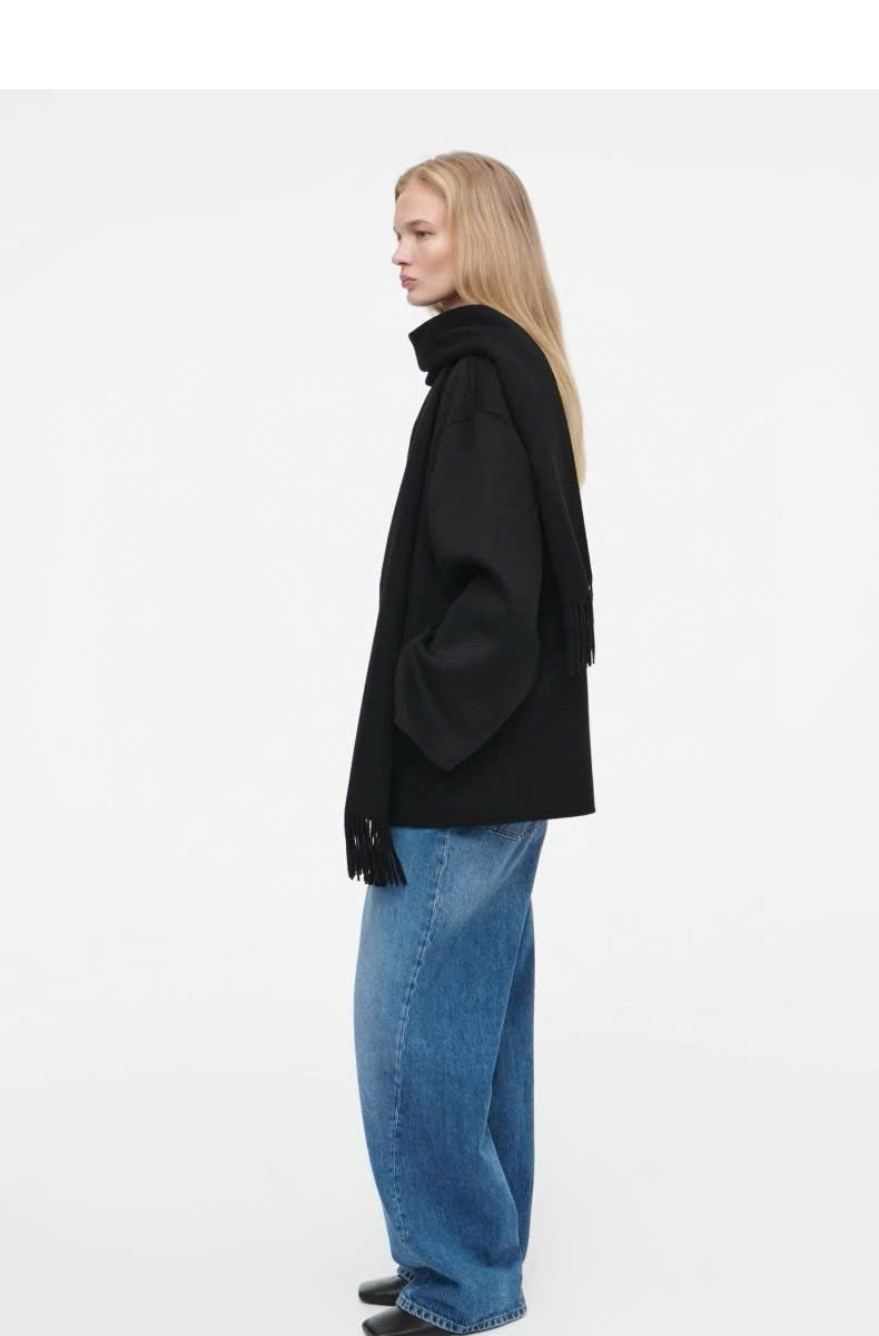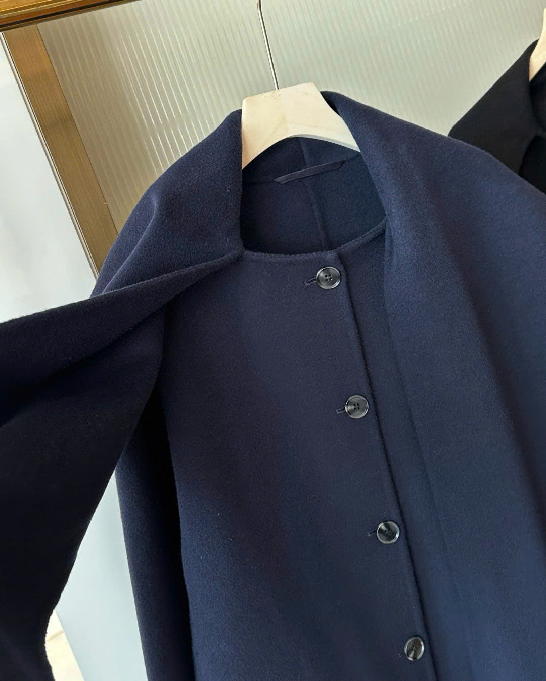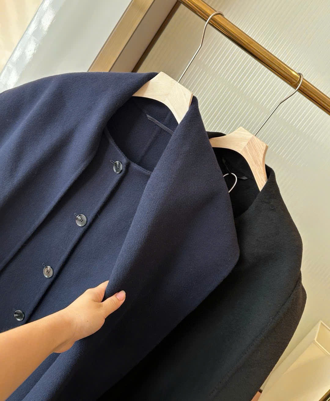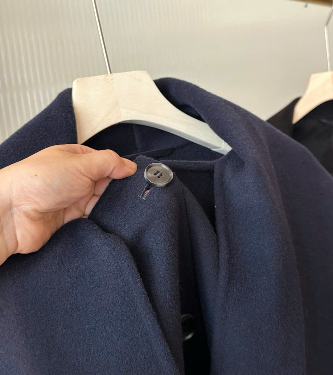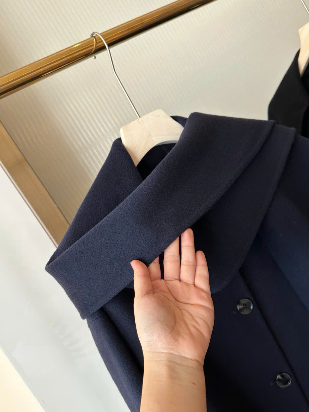 Áo khoác len Sandro dệt kim 2 hàng khuy viền trắng cổ tròn
