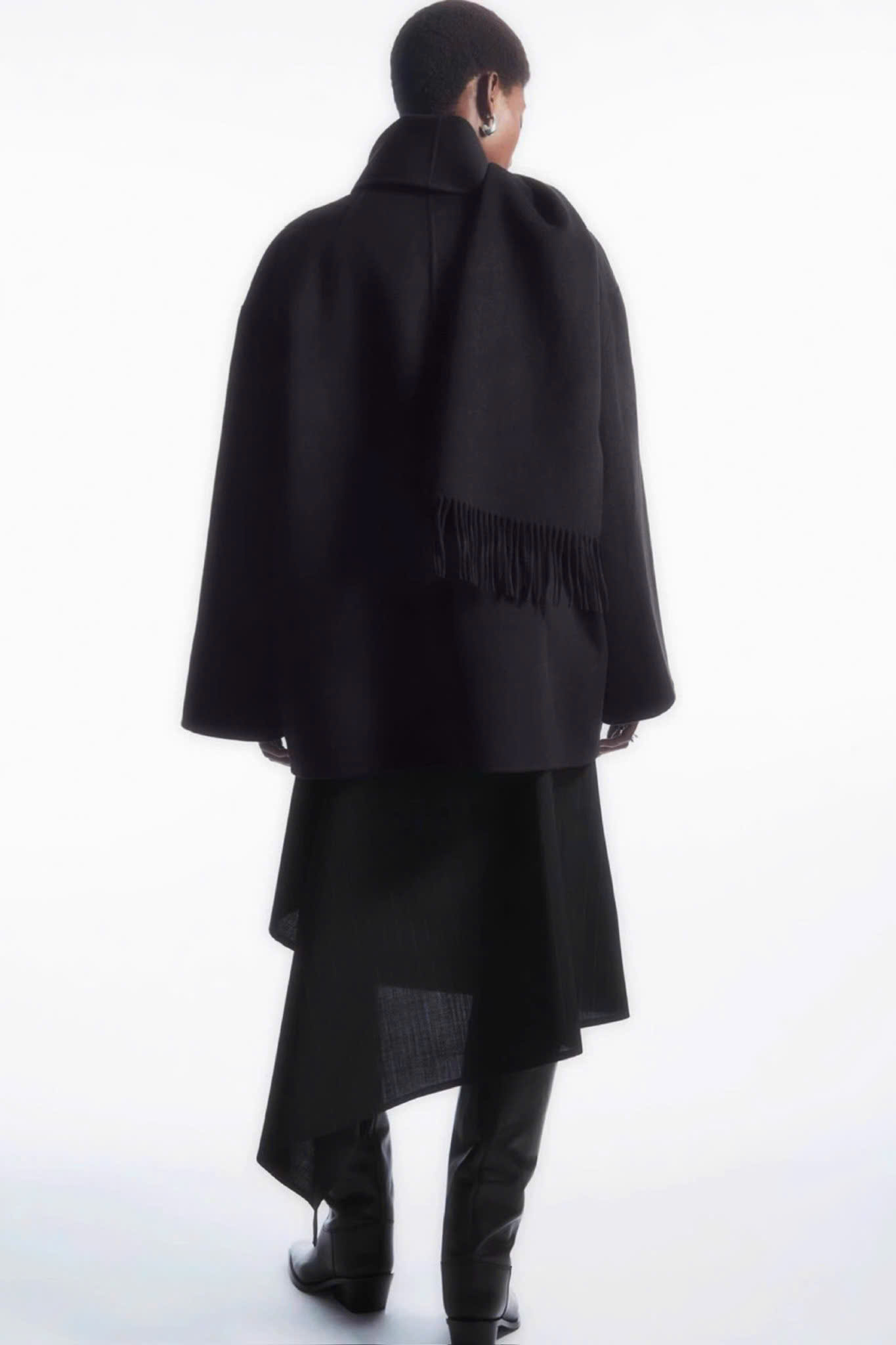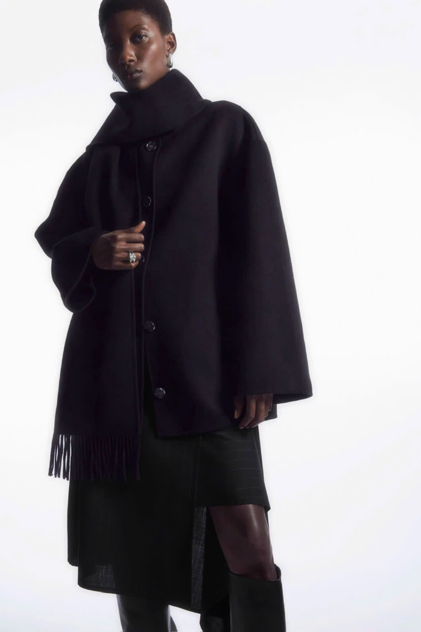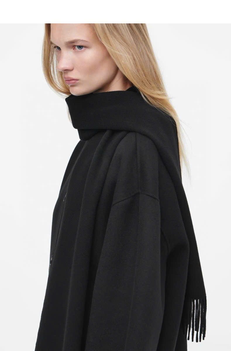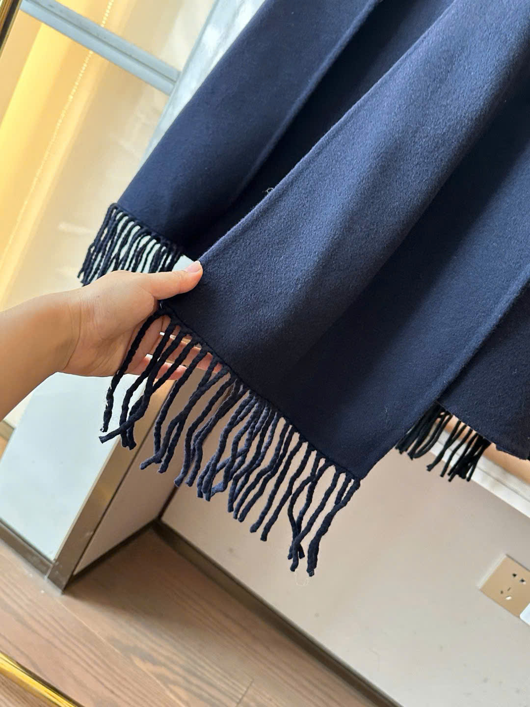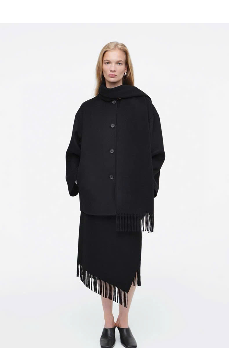Áo khoác len Sandro dệt kim 2 hàng khuy viền trắng cổ tròn