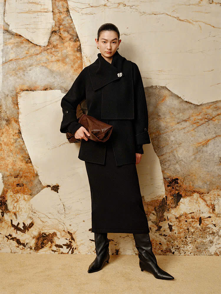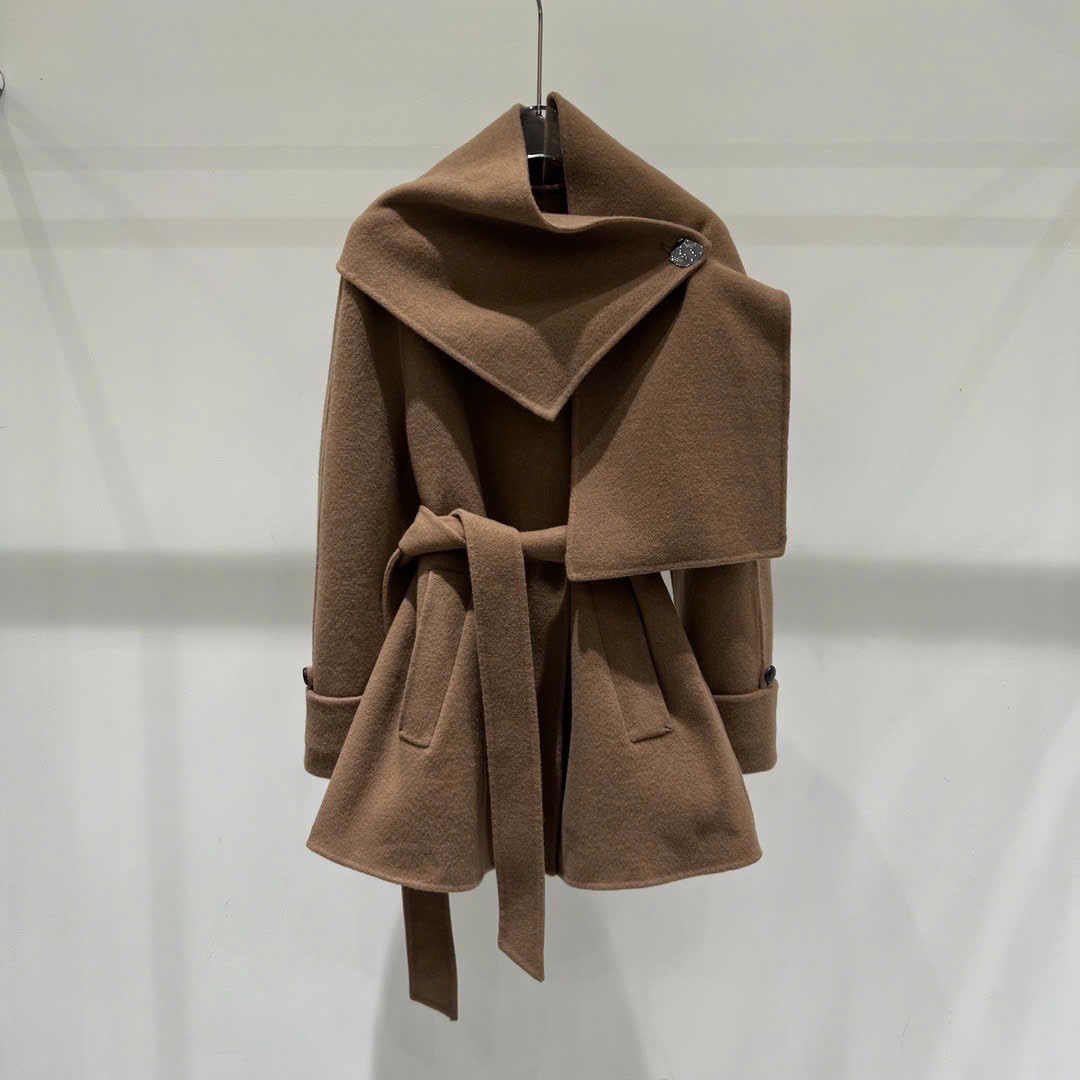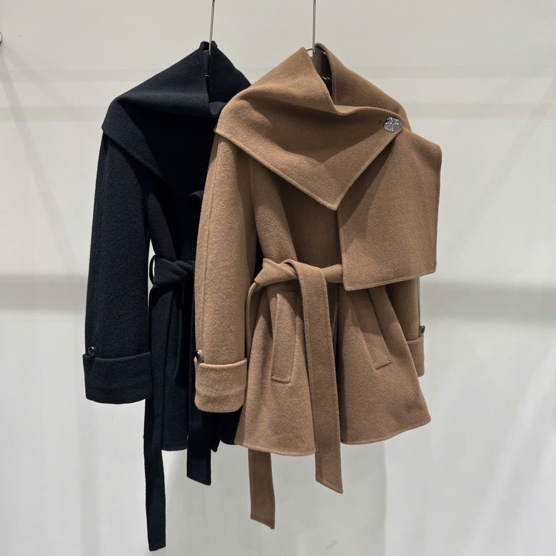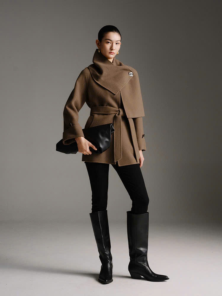 Áo khoác dạ ép ERDOS dáng lửng kèm belt cổ khăn