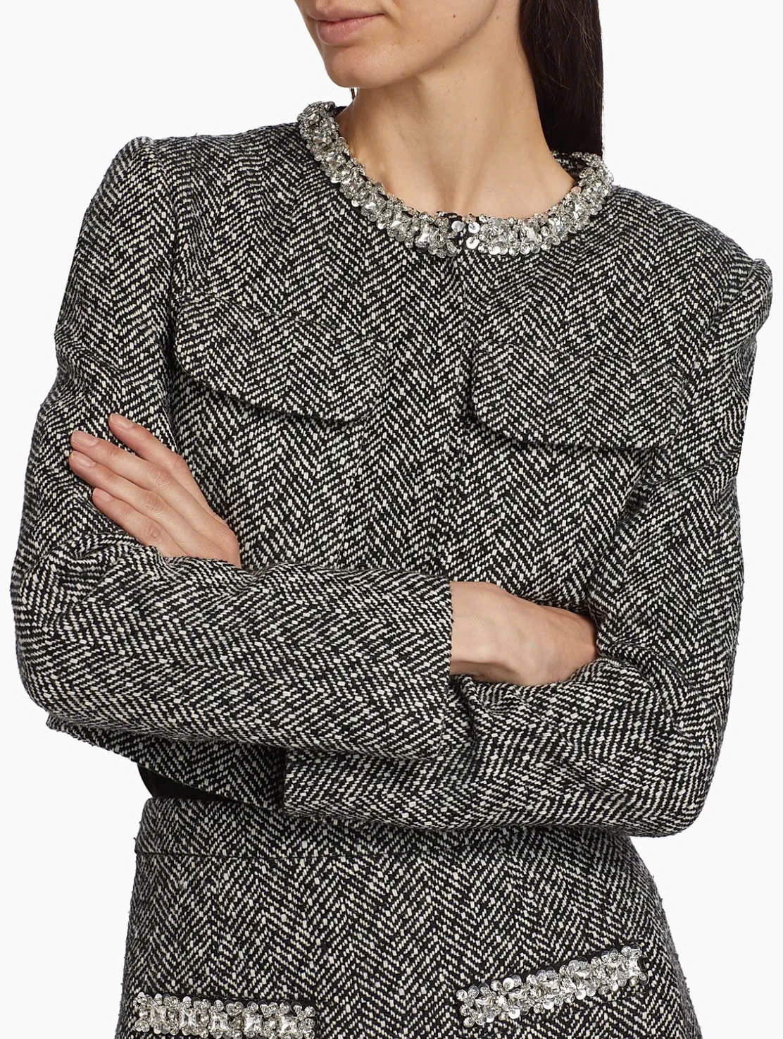 -Cổ tròn -Tay dài -Túi có nắp phía trước -Khóa cài ẩn phía trước -60% polyester/40% len -Lớp lót: 100% polyester -Giặt khô