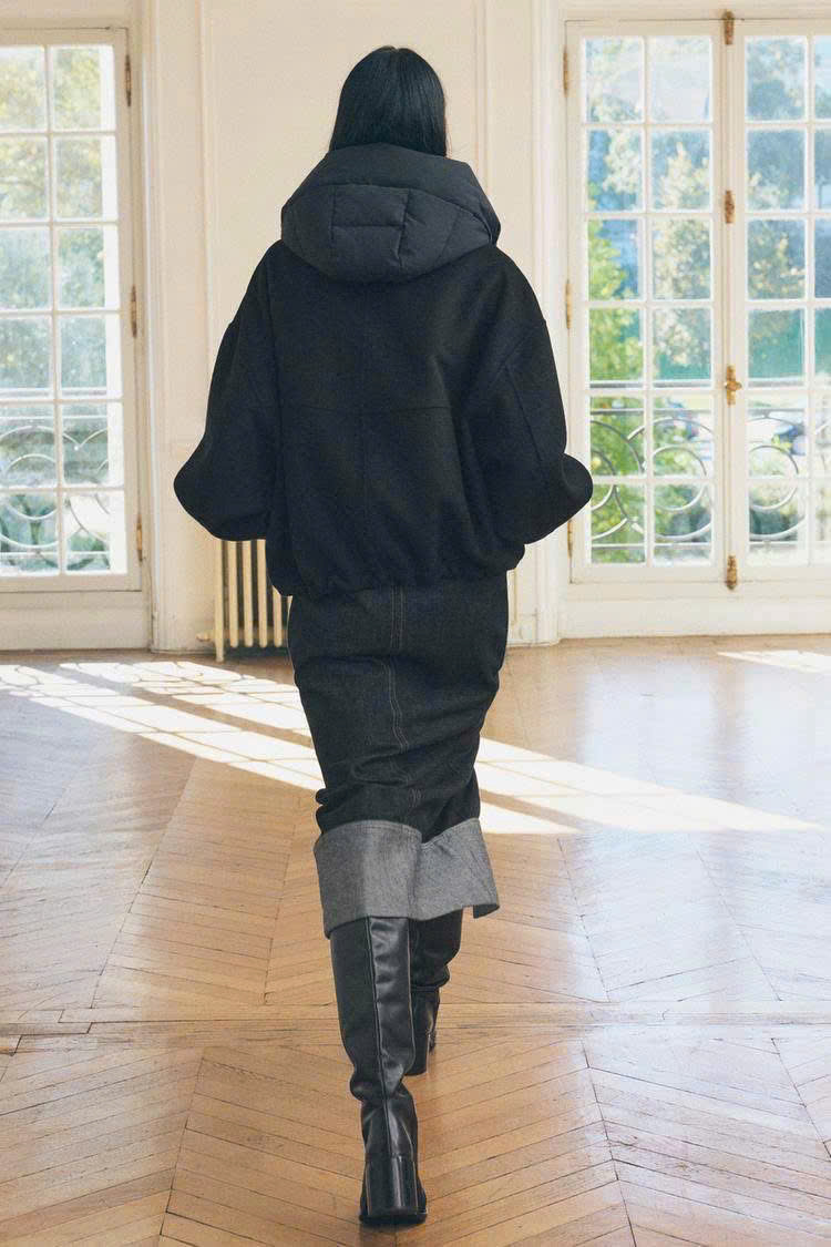 Áo khoác len Sandro dệt kim 2 hàng khuy viền trắng cổ tròn