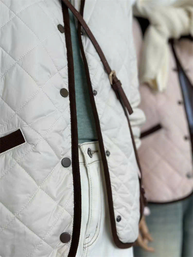 Áo khoác len Sandro dệt kim 2 hàng khuy viền trắng cổ tròn