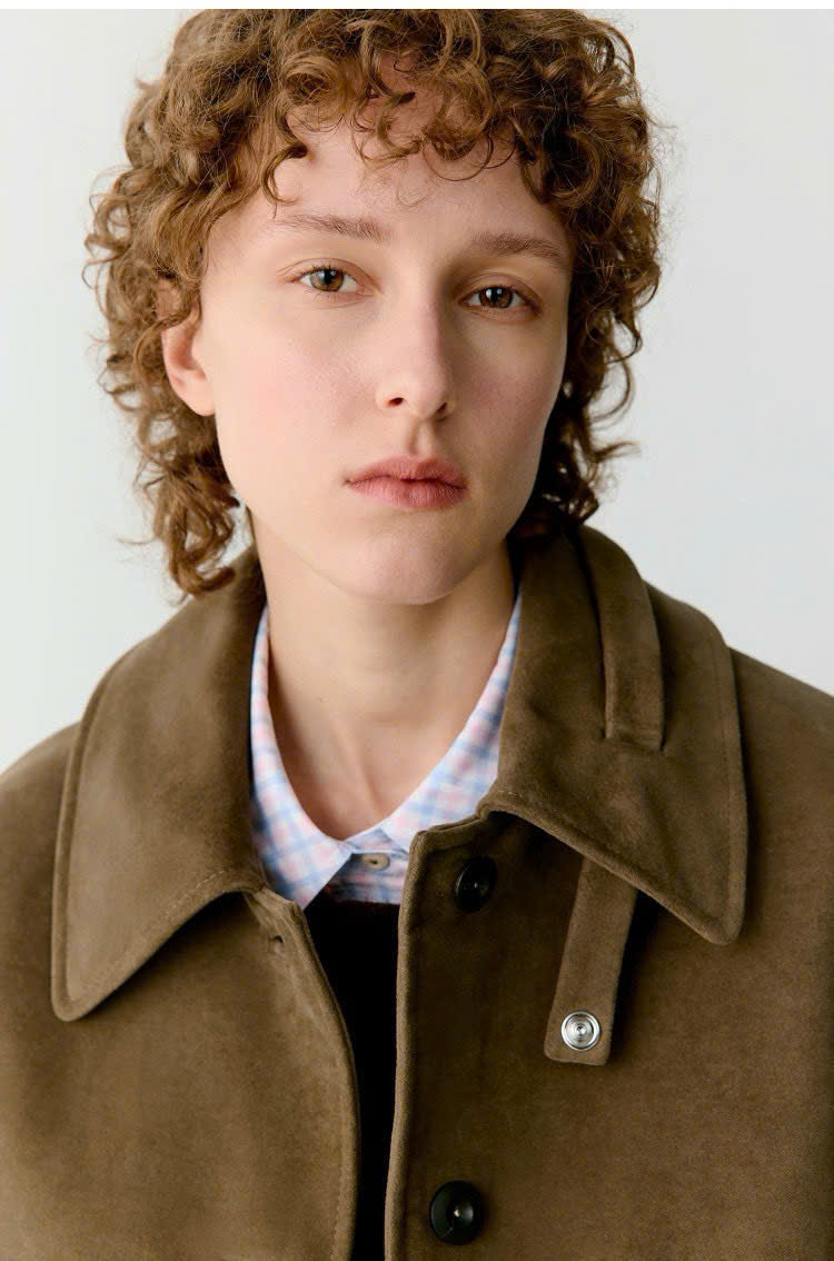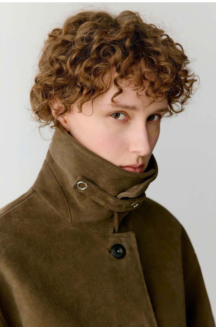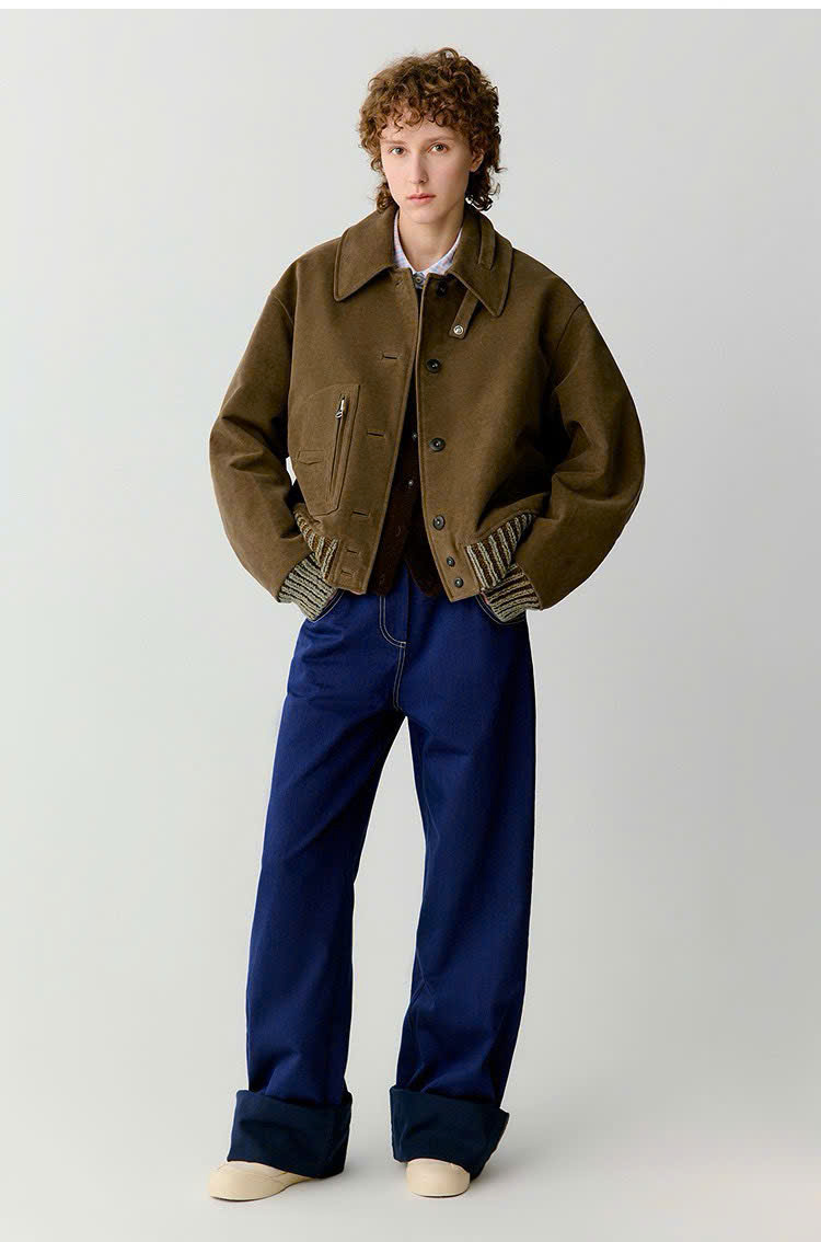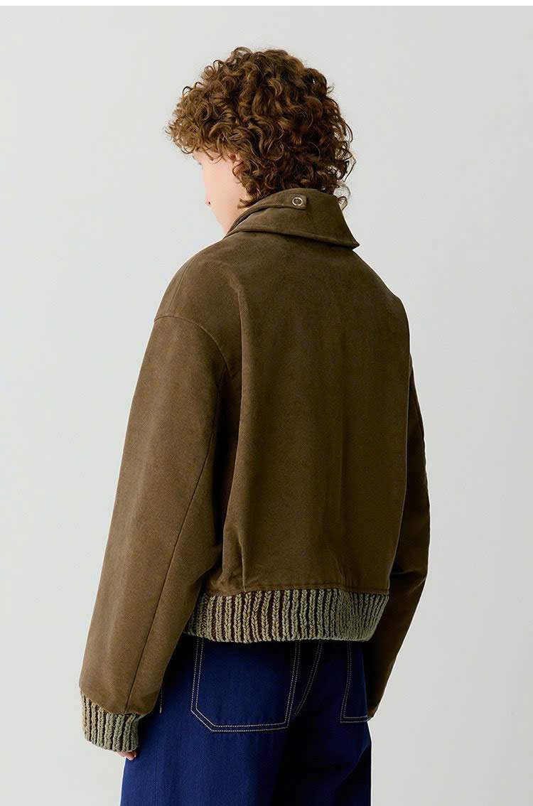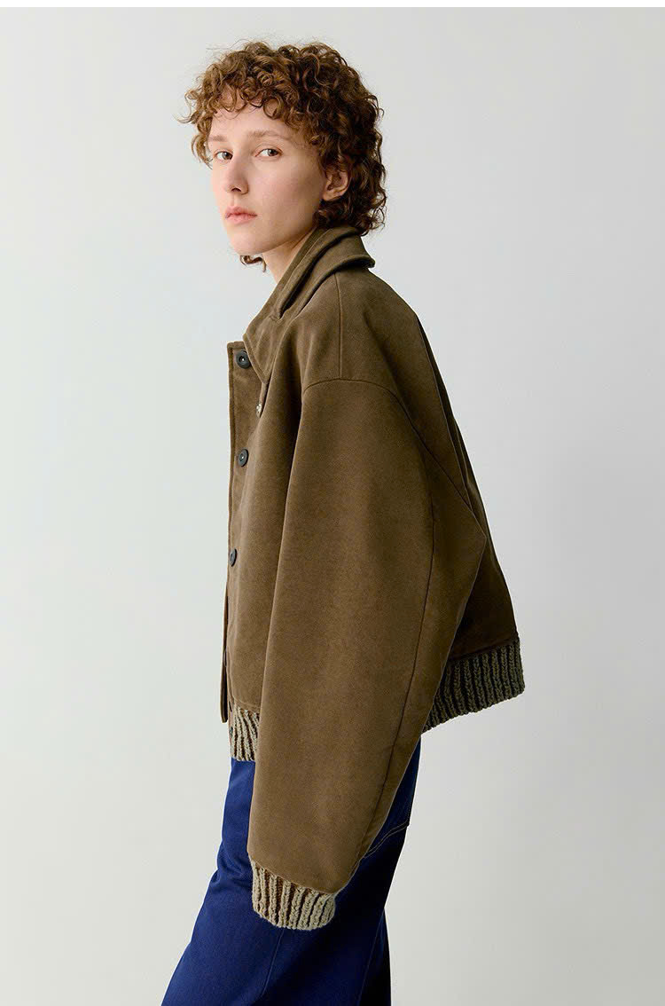 Áo khoác ICICLE màu cafe phối len 1 túi cổ đức