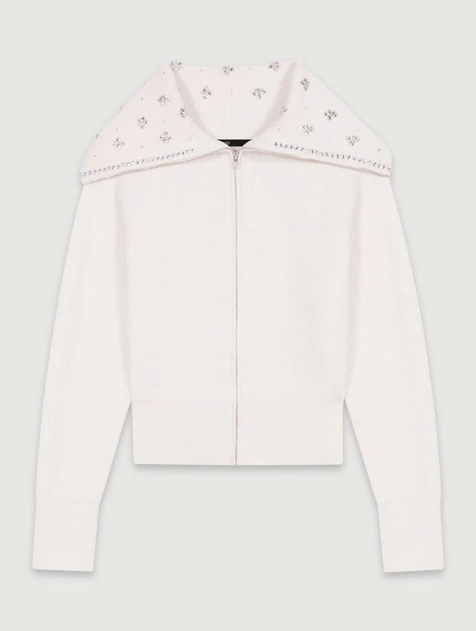 Cổ áo nửa khóa kéo đính đá quý