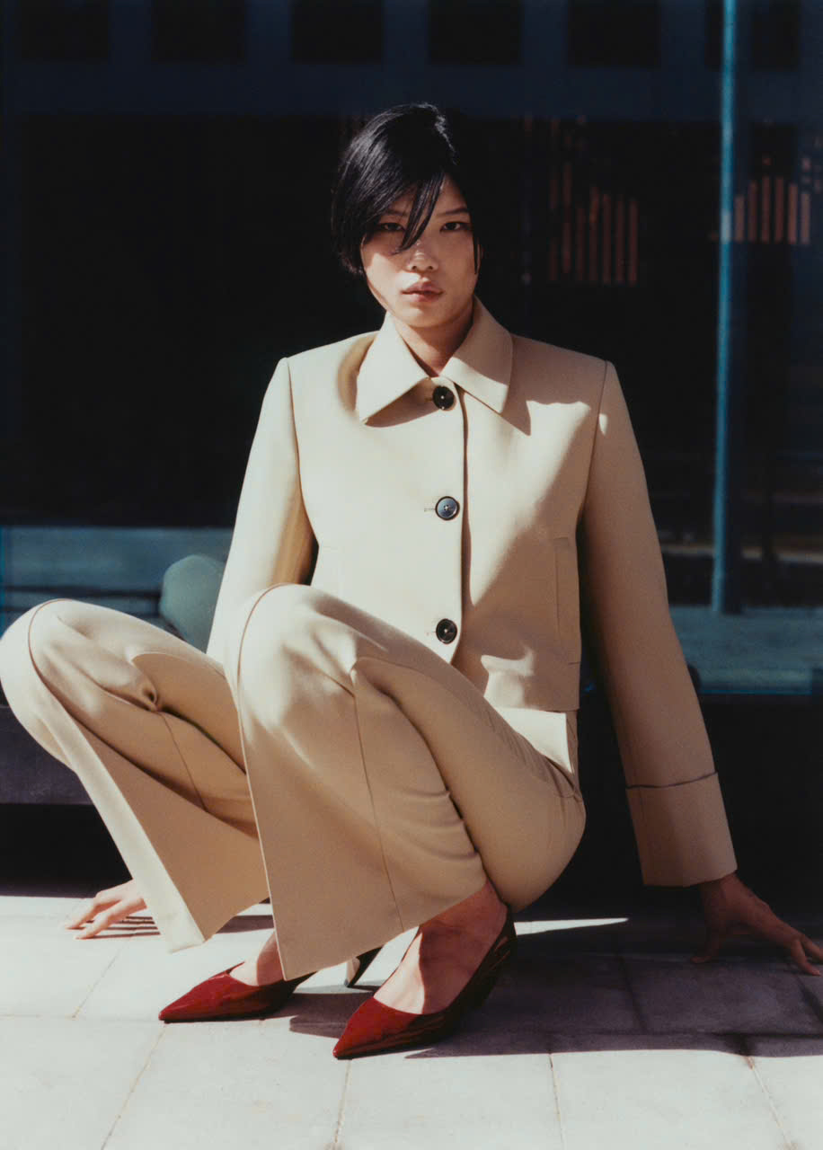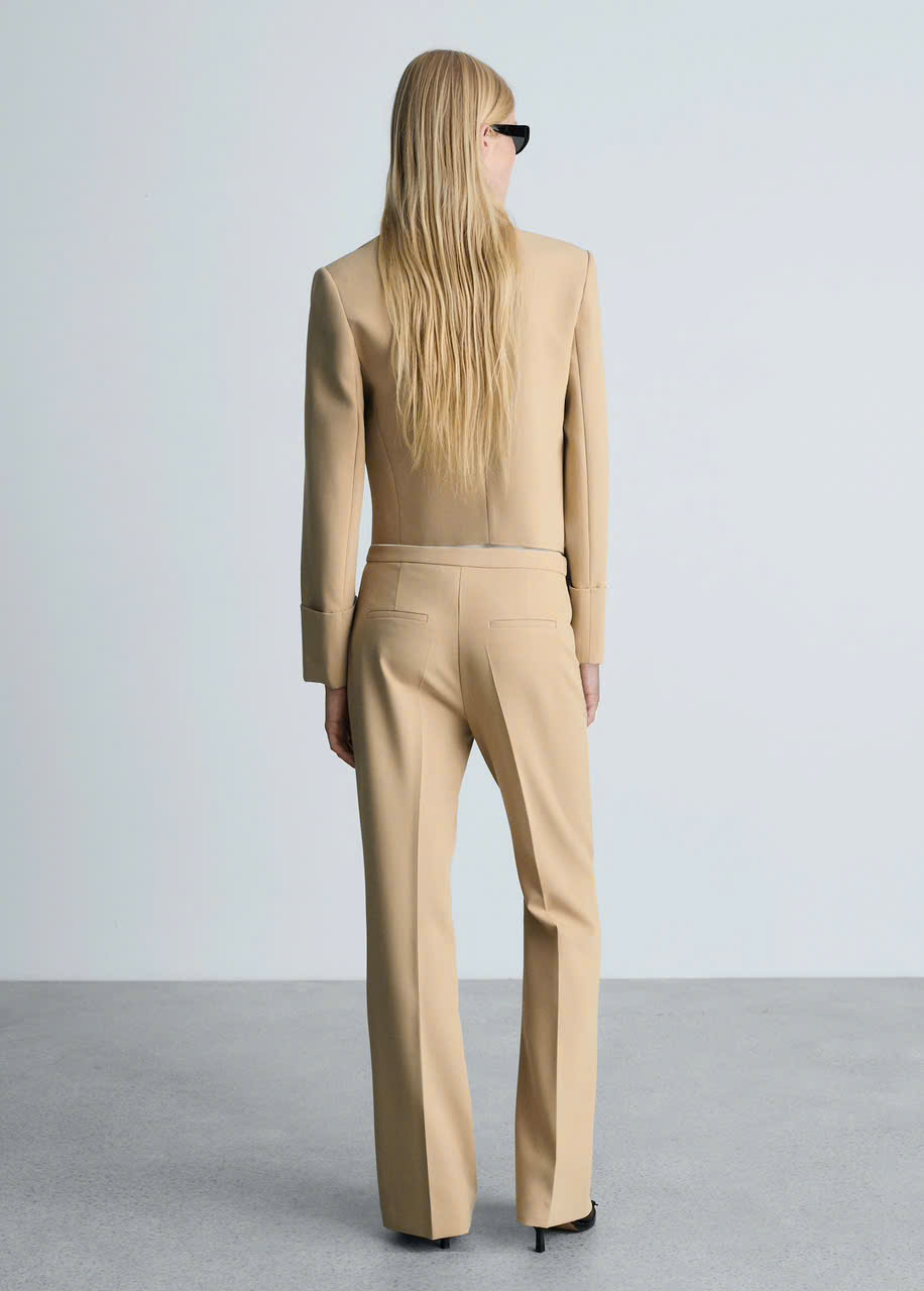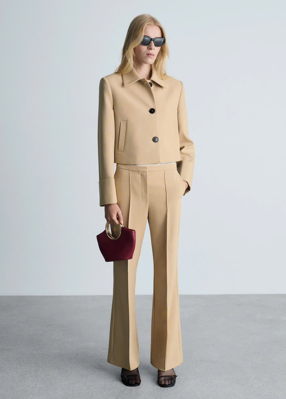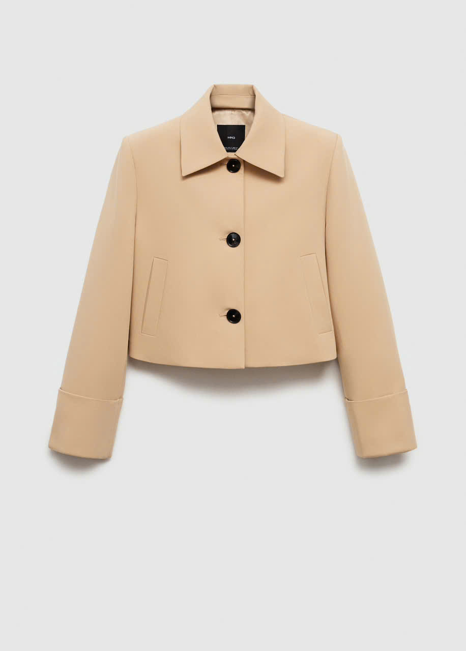 Áo khoác len Sandro dệt kim 2 hàng khuy viền trắng cổ tròn