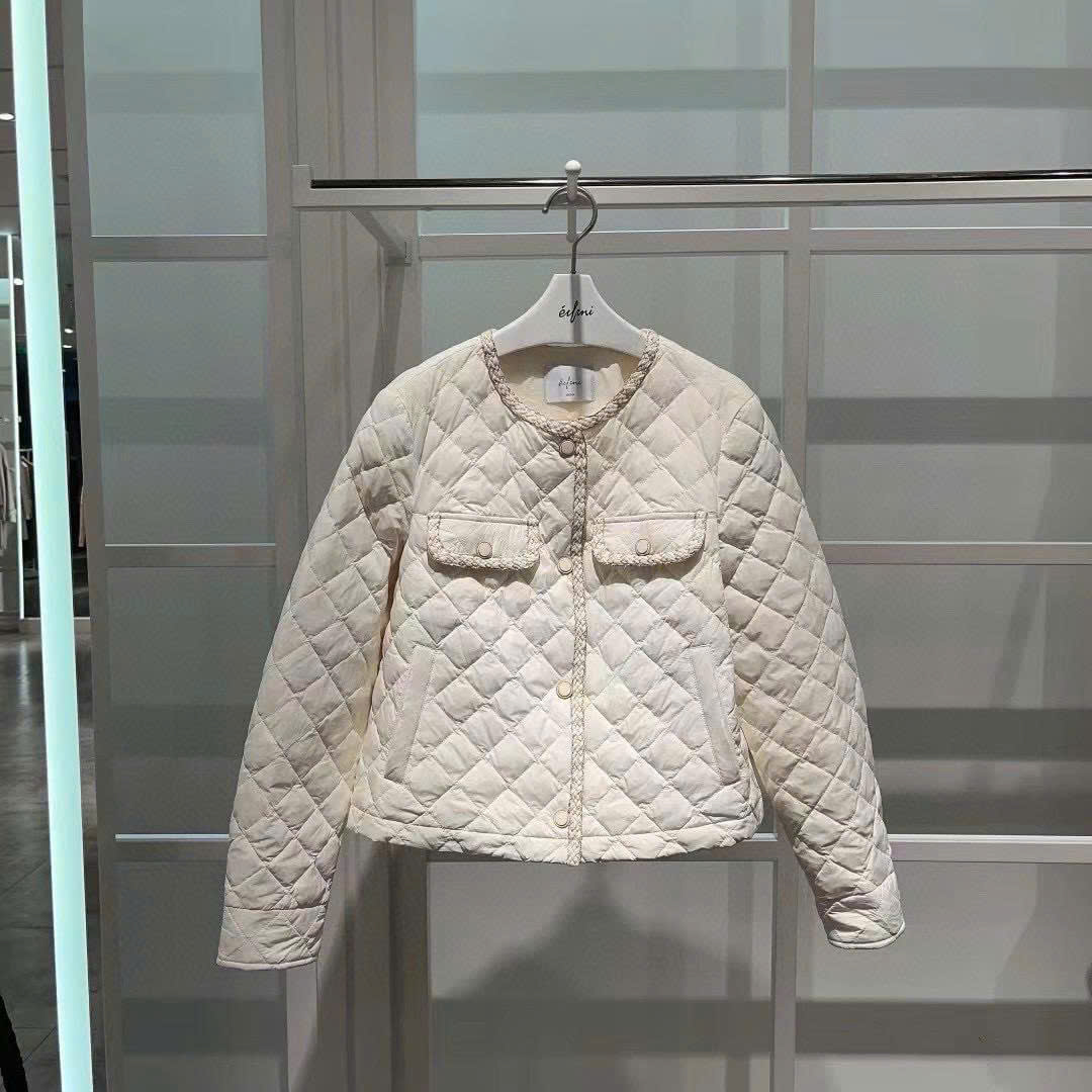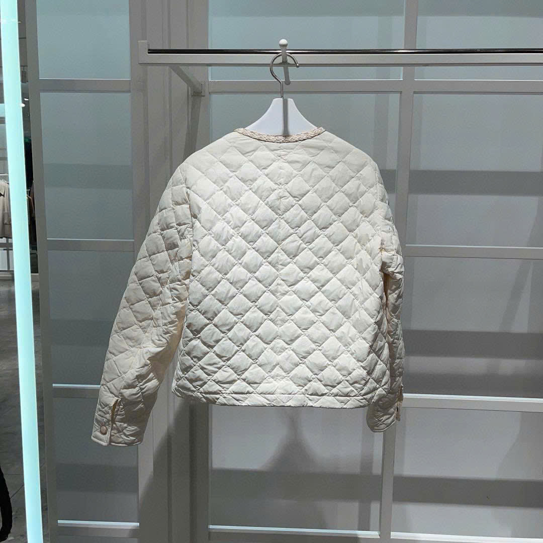 Áo khoác len Sandro dệt kim 2 hàng khuy viền trắng cổ tròn