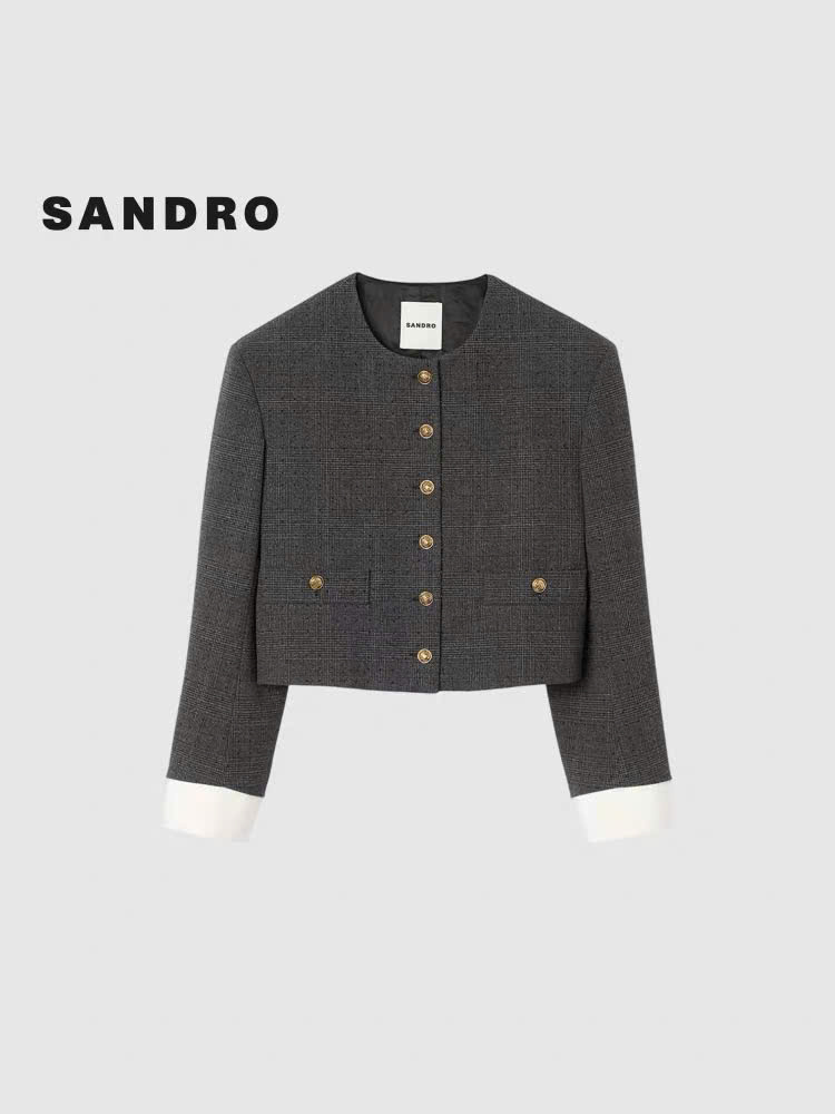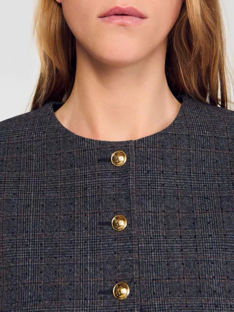 • Áo khoác vest kẻ caro đính đá nữ Sandro