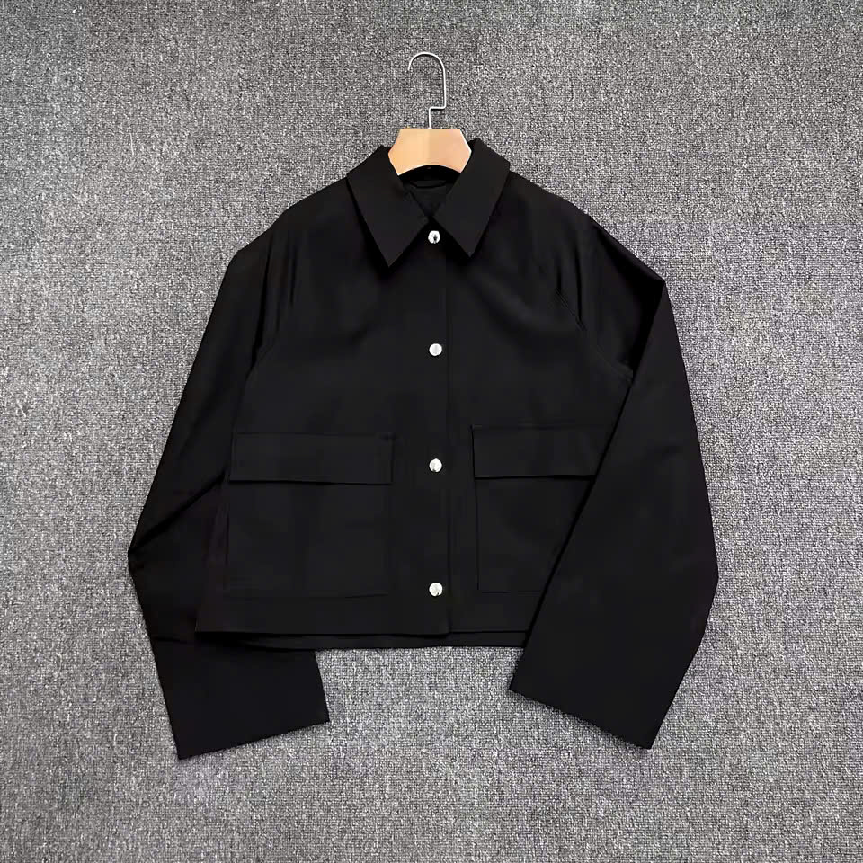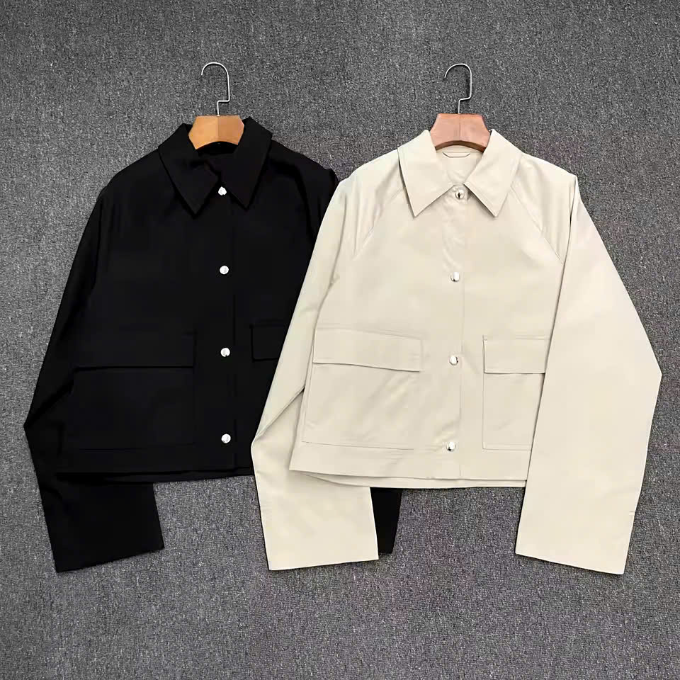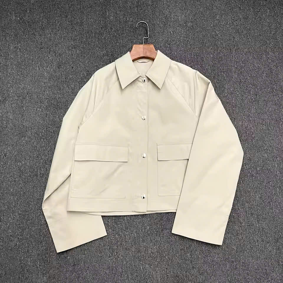 Áo khoác len Sandro dệt kim 2 hàng khuy viền trắng cổ tròn