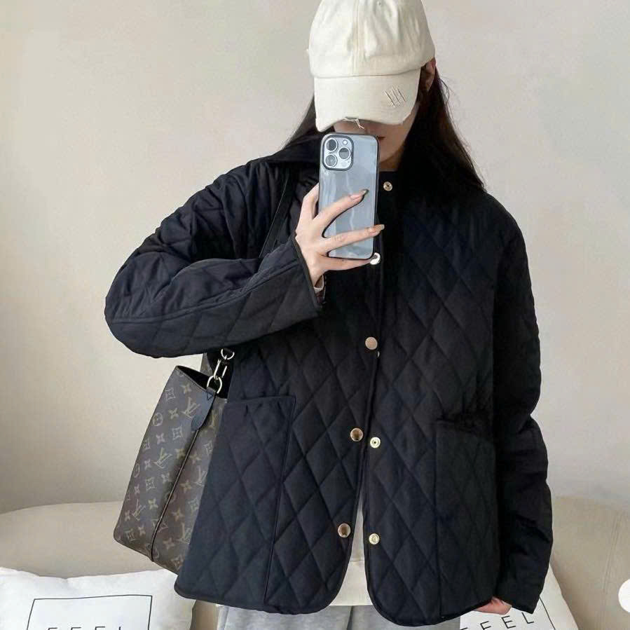 Áo khoác trần bông BBR cổ nhung đen 2 màu
