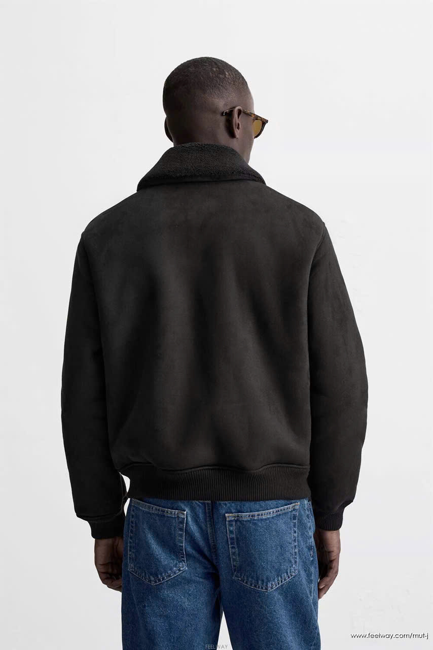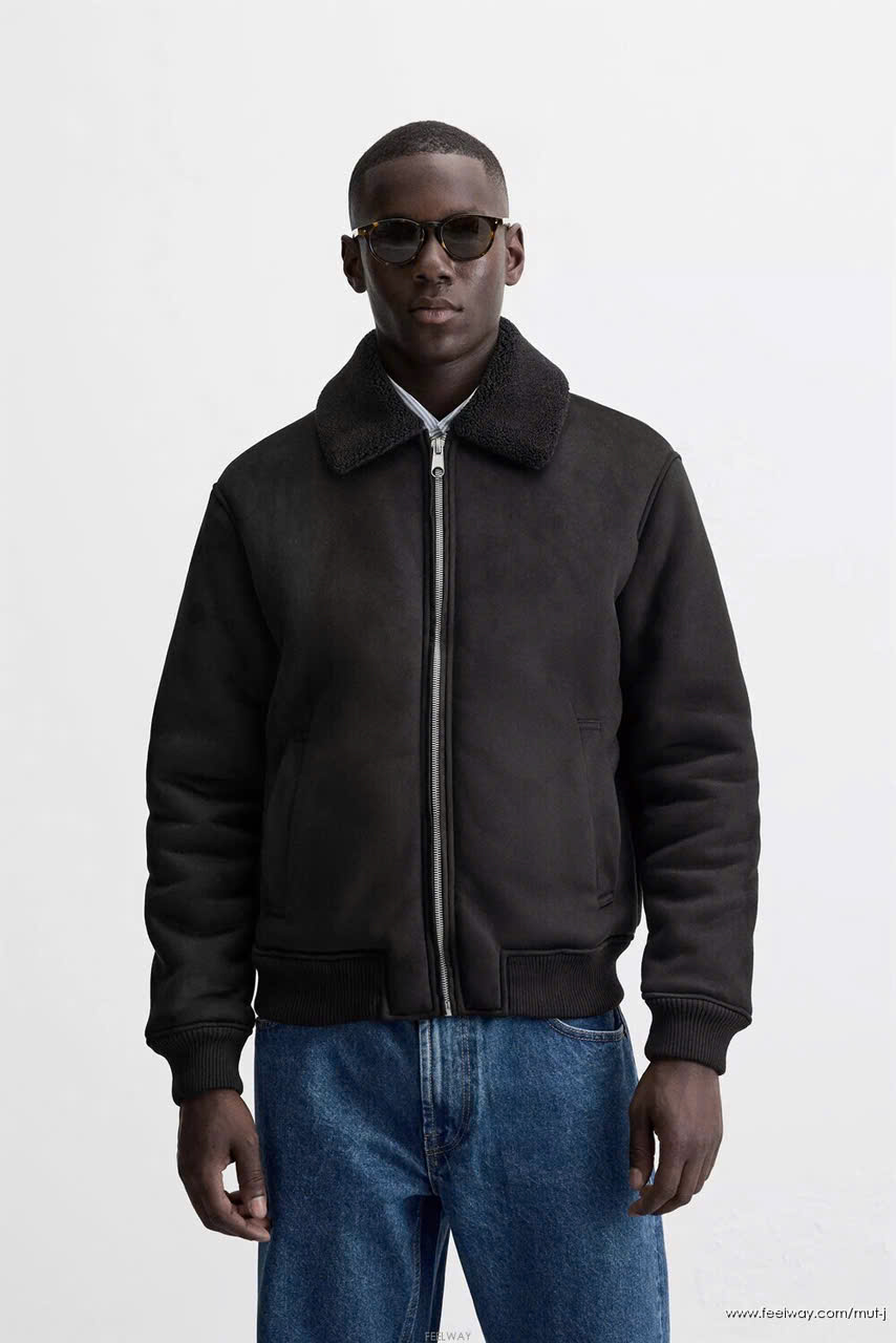 Áo khoác Zara da lộn 3 màu cổ bẻ lót lông kéo khóa