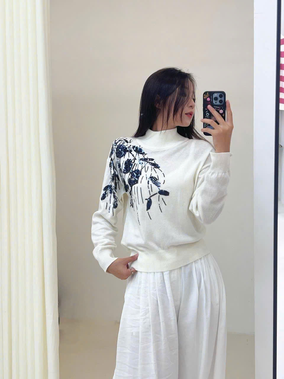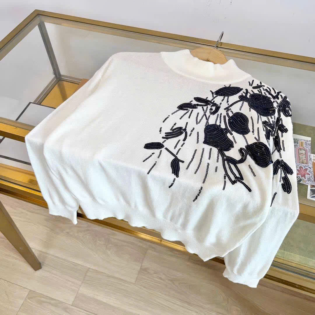 Áo len Brunello Cucinelli cổ trụ đính hoa sequin ngực