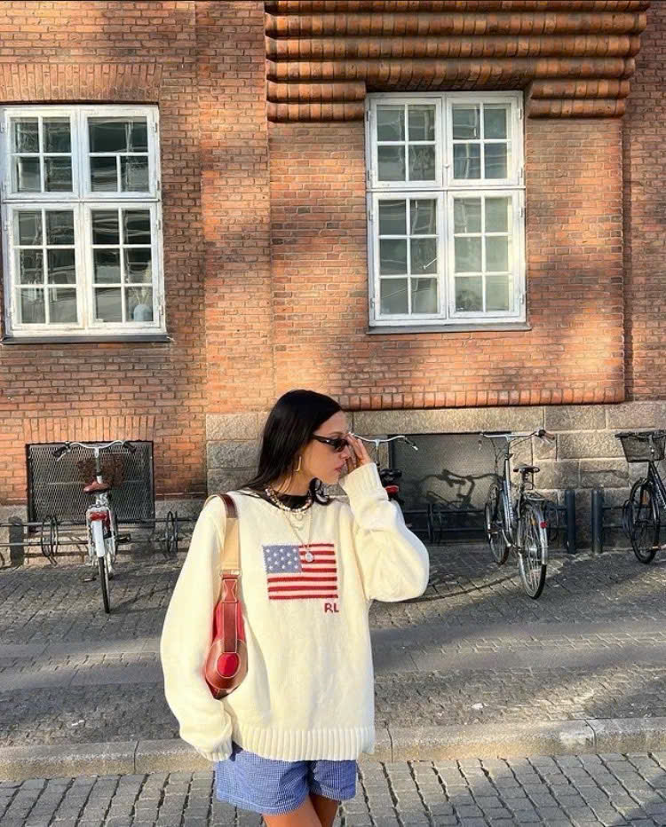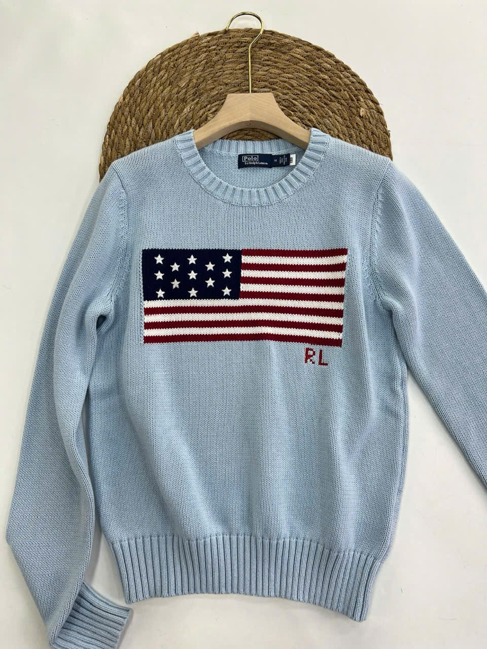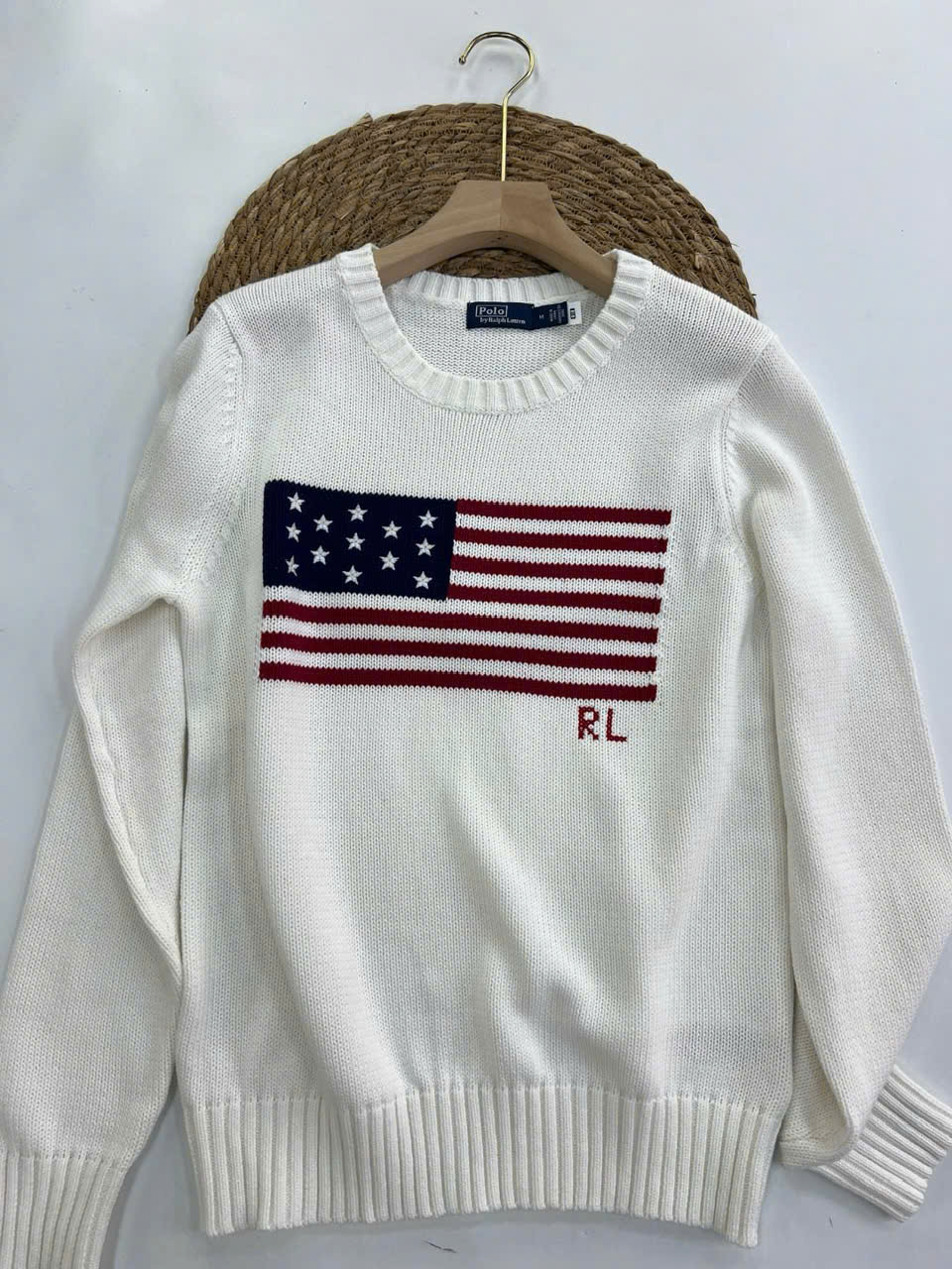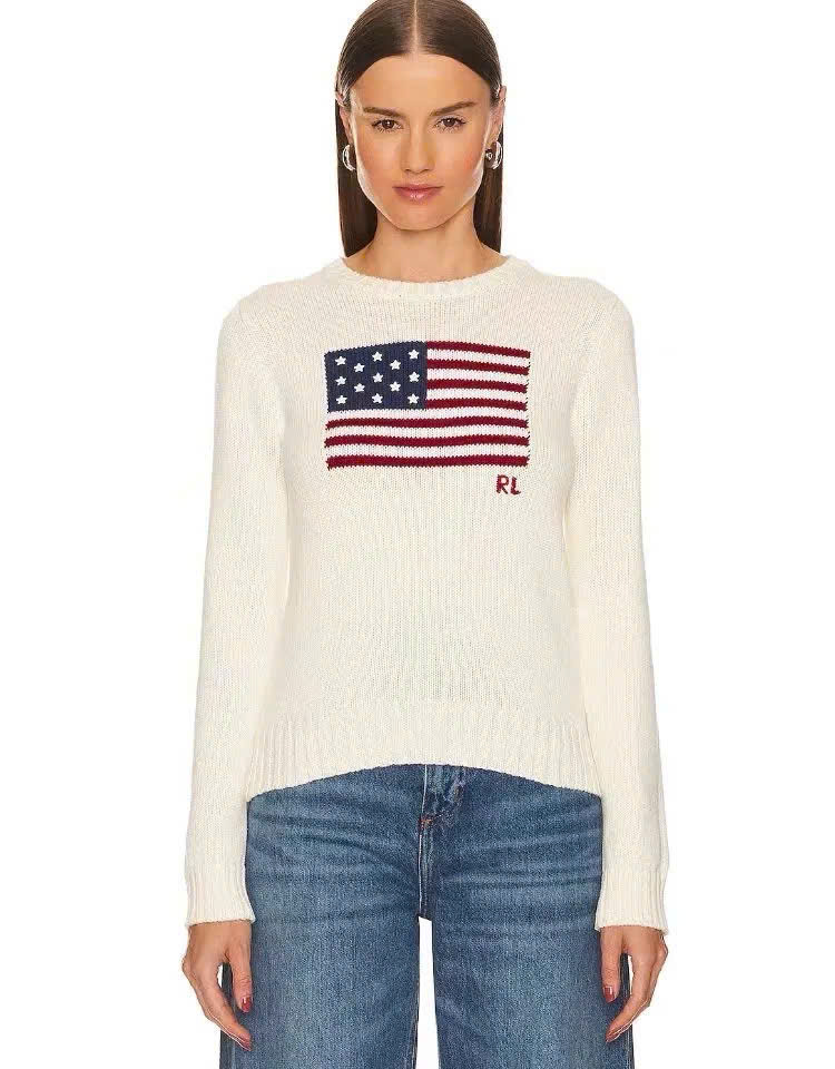 Áo len cổ tròn Ralph Lauren Flag Cotton có đặc điểm: Chất liệu cotton dệt kim có họa tiết và họa tiết cờ khảm với 13 ngôi sao thêu, phản ánh phong cách Mỹ đặc trưng của Ralph Lauren. Chất liệu; 100% Cotton