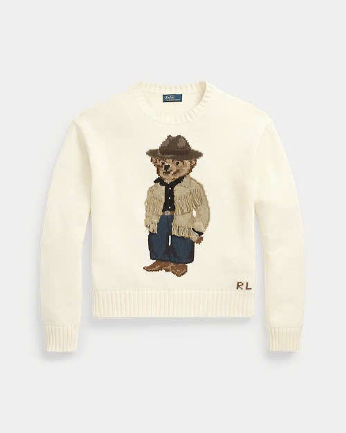 •Polo Bear dệt kim intarsia ở mặt trước. Chữ "RL" được thêu chữ thập ở gấu áo bên trái.