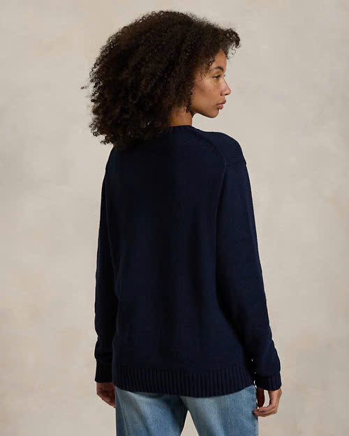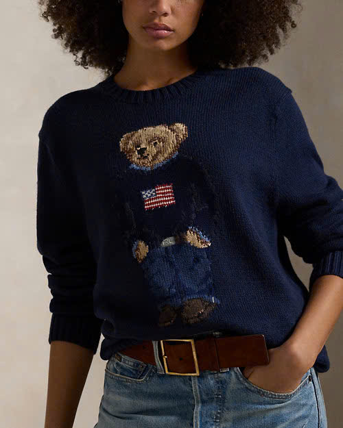 •Áo len cổ tròn, tay dài. •Vải dệt kim. •Hình chú gấu Polo biểu tượng ở mặt trước. •Logo "RL" thêu ở gấu áo phía trước bên trái. •Cổ áo, cổ tay áo và gấu áo bo chun mềm mại.