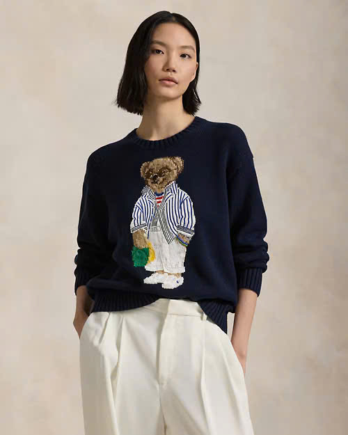 •100% cotton •Giặt tay bằng nước lạnh •Kiểu dáng chui đầu •Họa tiết gấu Polo đan và thêu phía trước