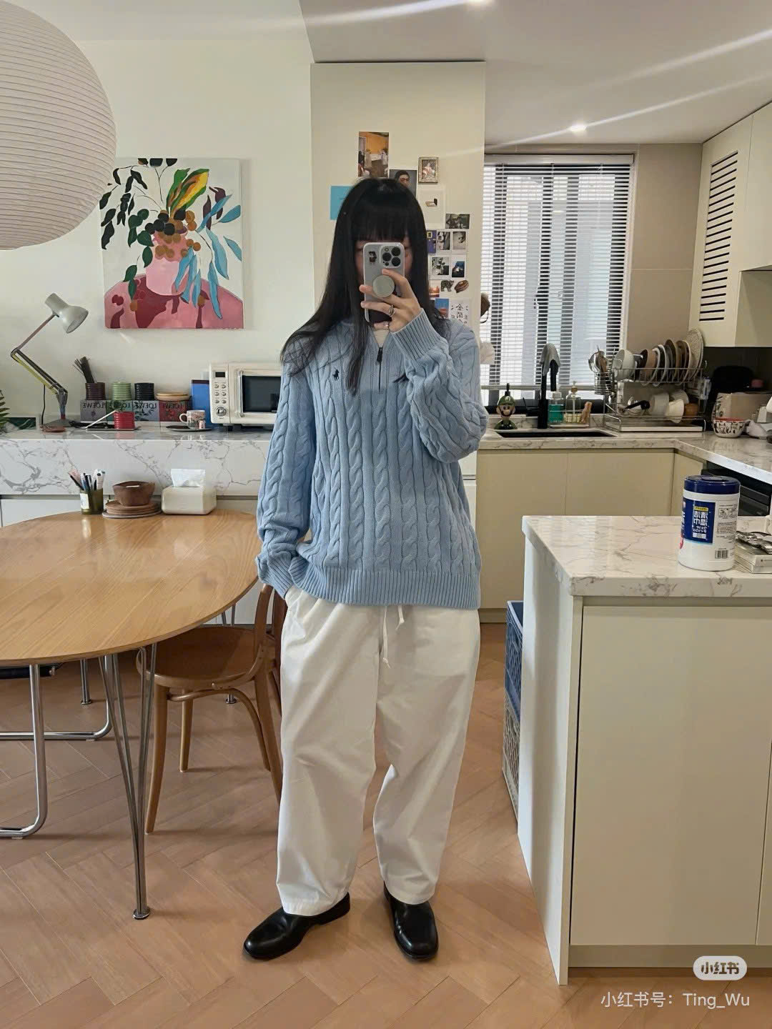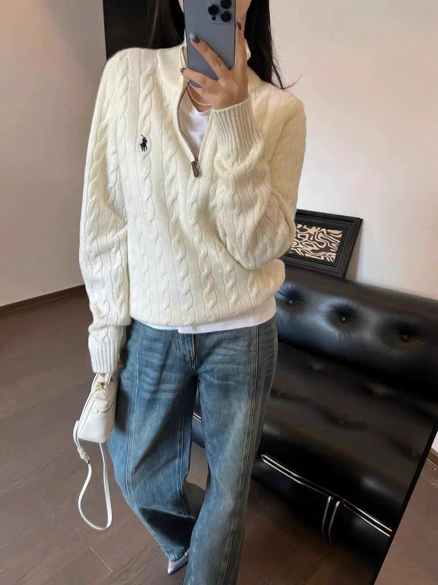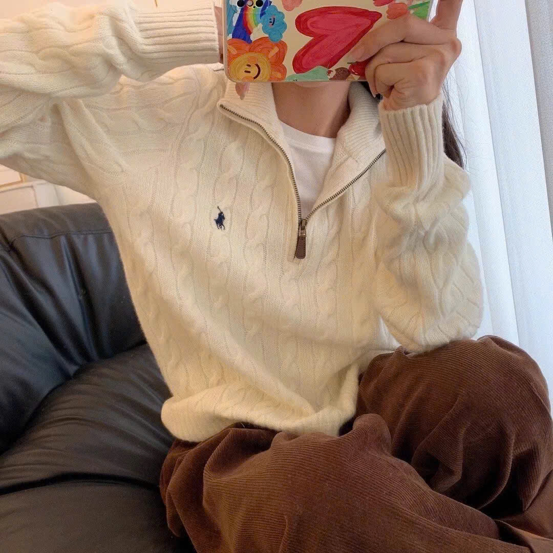 Áo len Polo cổ trụ kéo khoá 5 màu 81% cotton