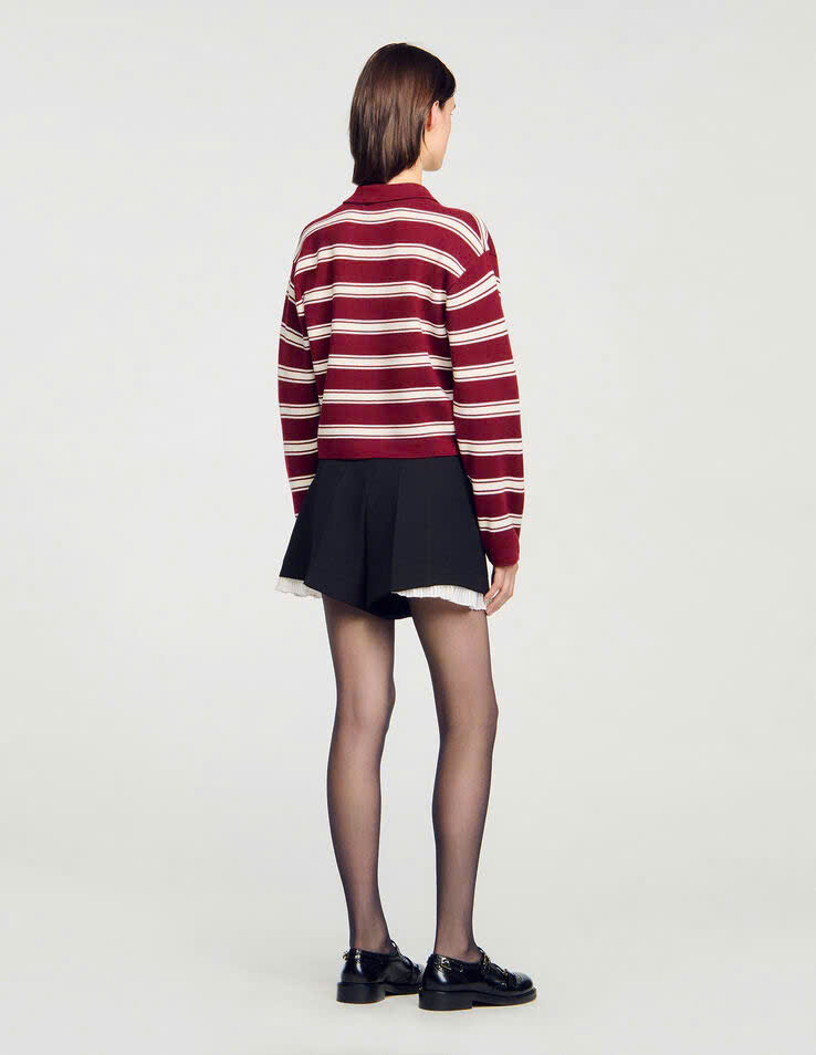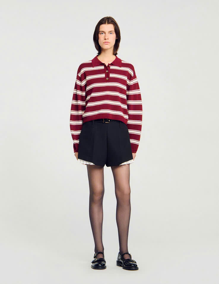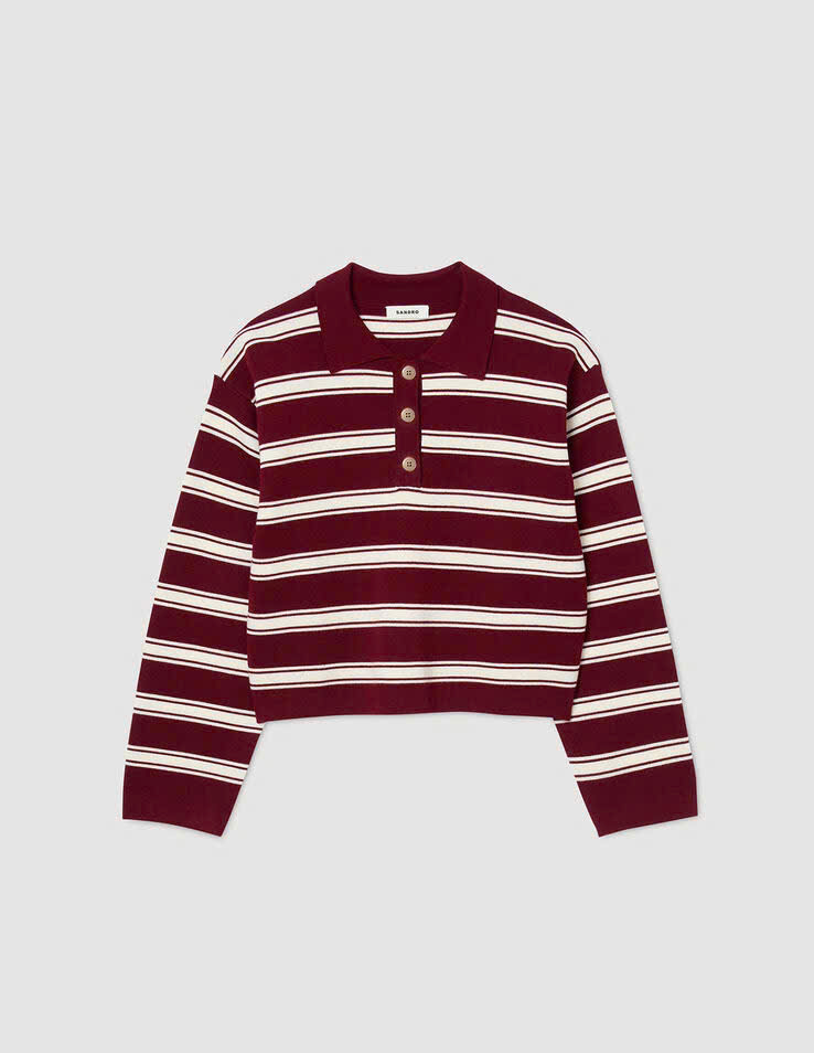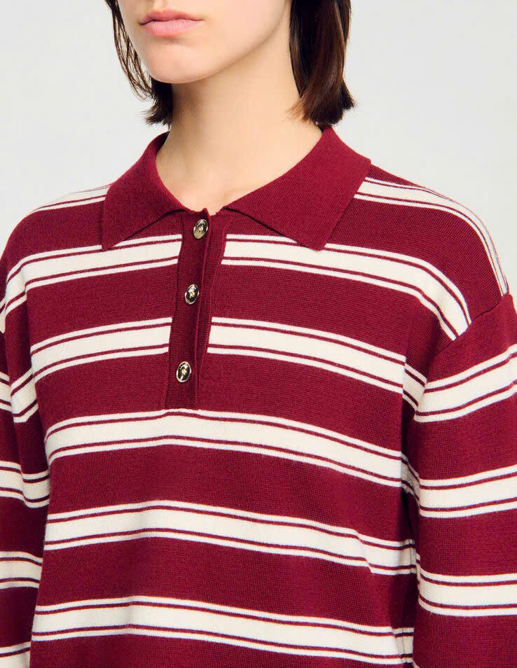 Áo len Sandro kẻ ngang đỏ cổ bẻ