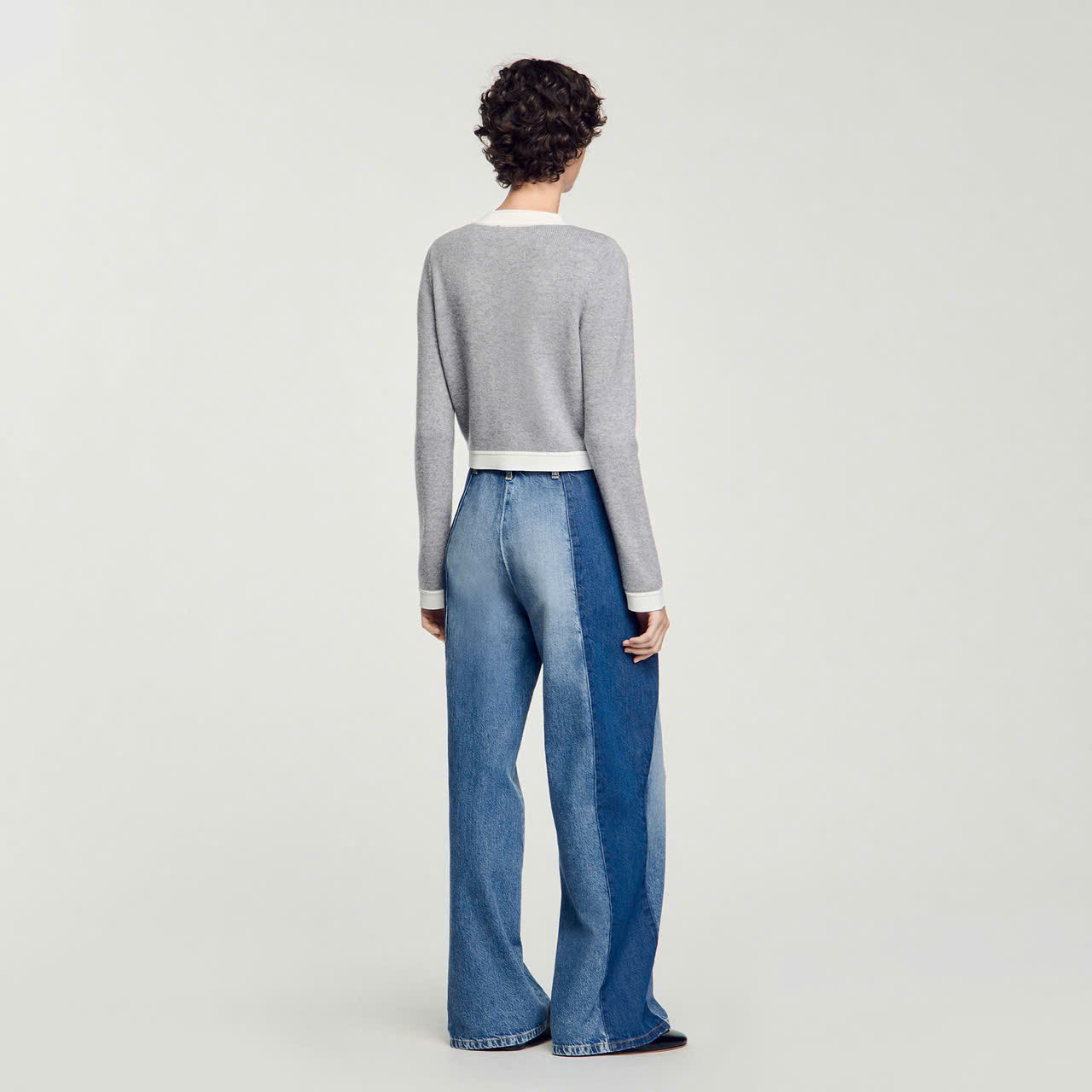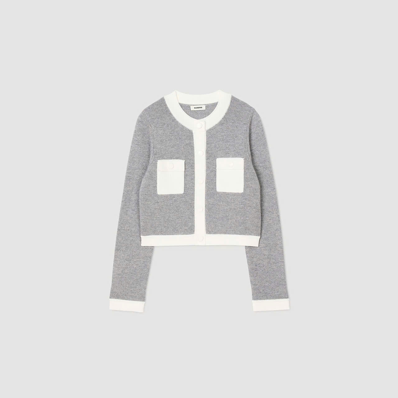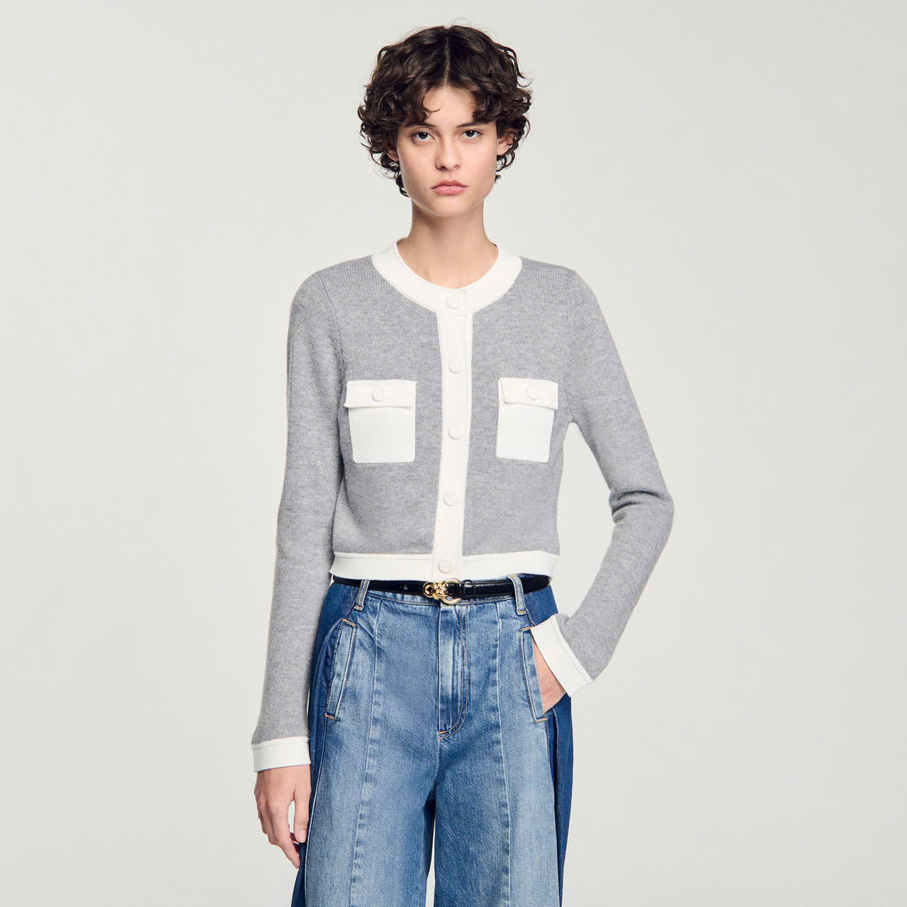 Áo khoác cardigan nữ Sandro hai tông màu Vải len cashmere và len Cổ tròn Tay dài Túi vá có nắp và khuy bấm