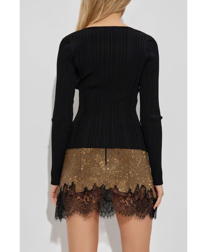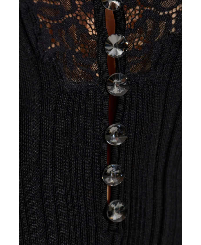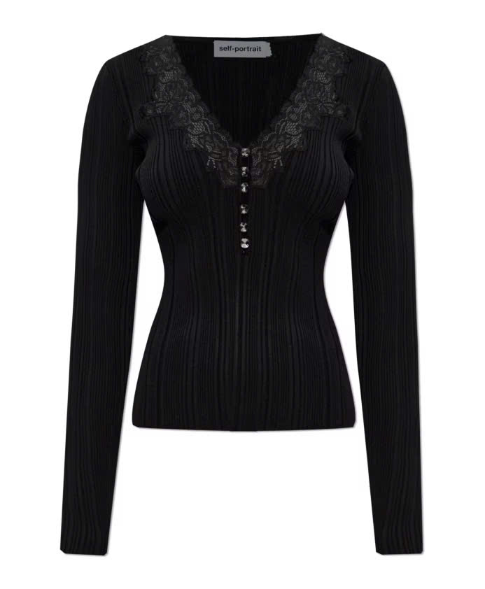 Điểm nổi bật màu đen họa tiết gân viền ren cúc cài phía trước tay dài cổ chữ V