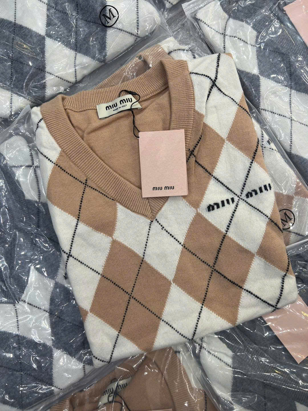 Áo len trần trám MiuMiu
