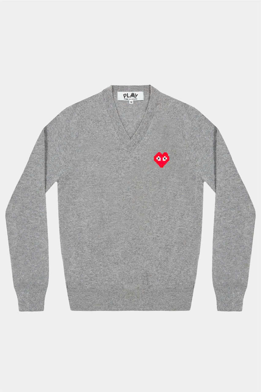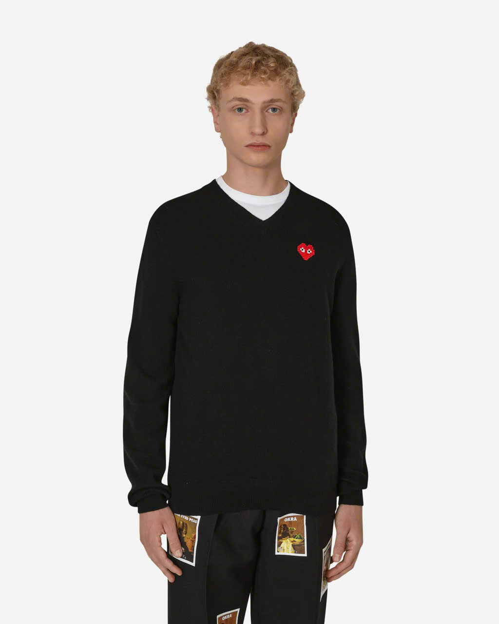 Comme Des Garçons PLAY x Invader Heart Áo len cổ chữ V 100% len Cổ áo chữ V Thêu hình trái tim điểm ảnh Cổ tay và viền áo có gân