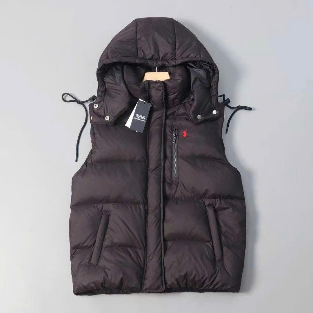 Áo phao gile Polo có mũ logo thêu