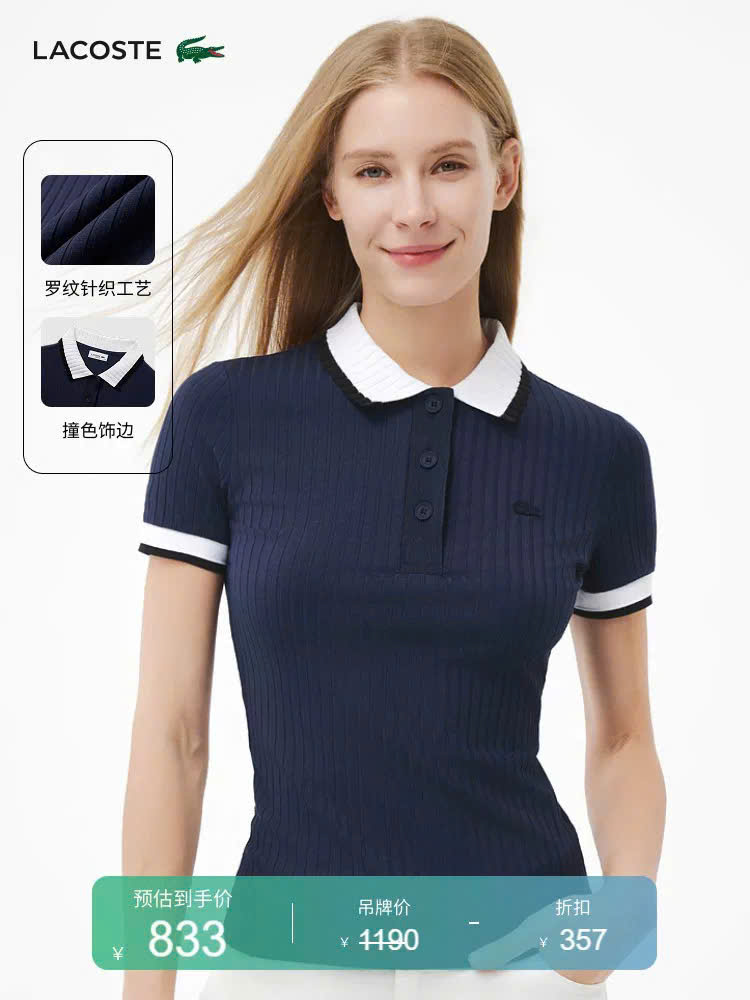 Áo thun tăm Lacoste cổ bẻ