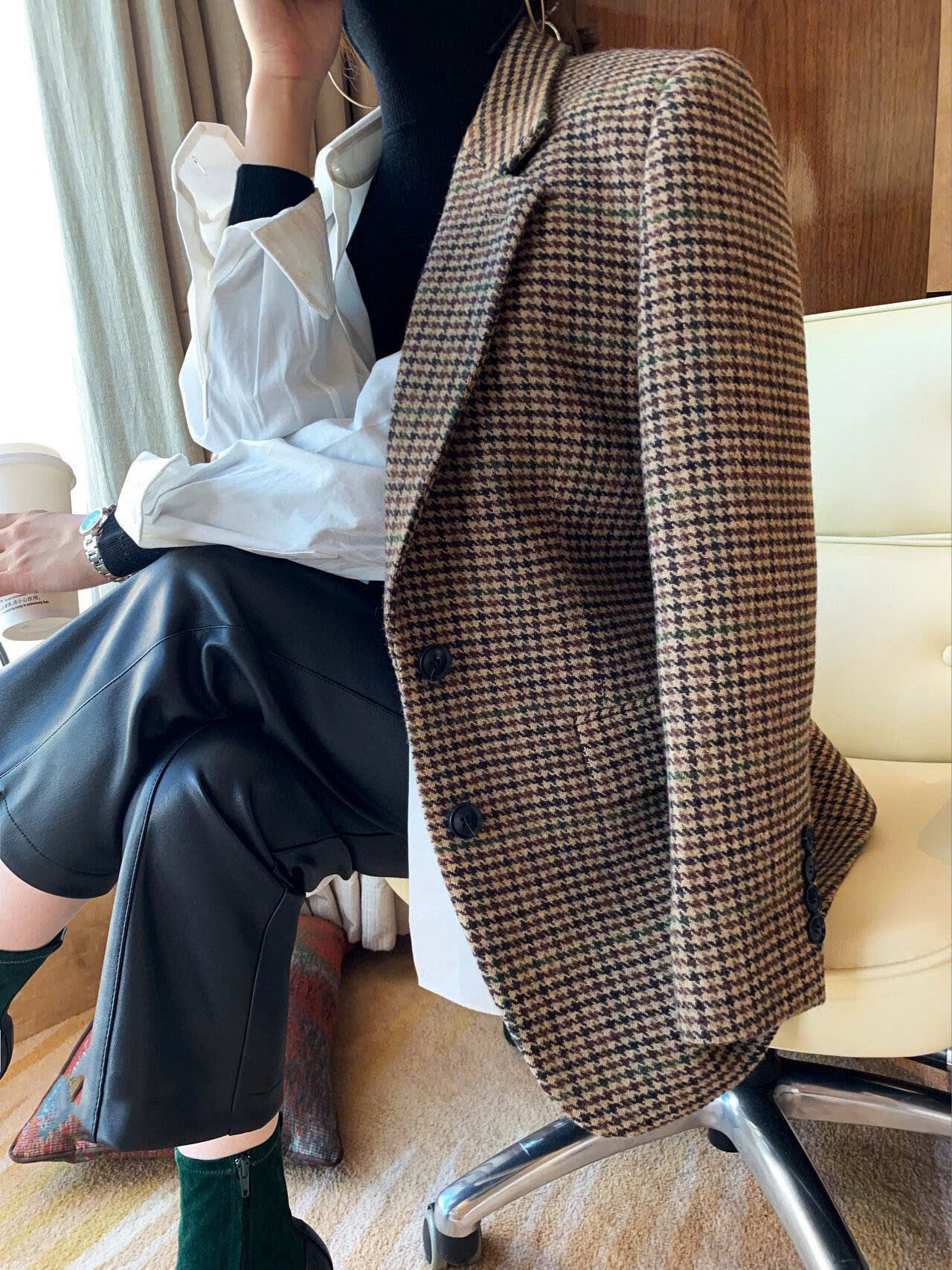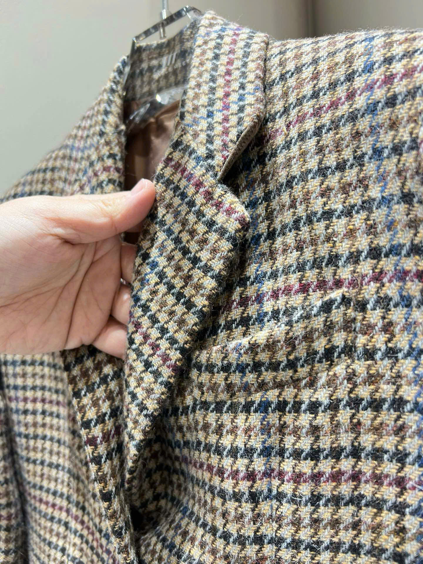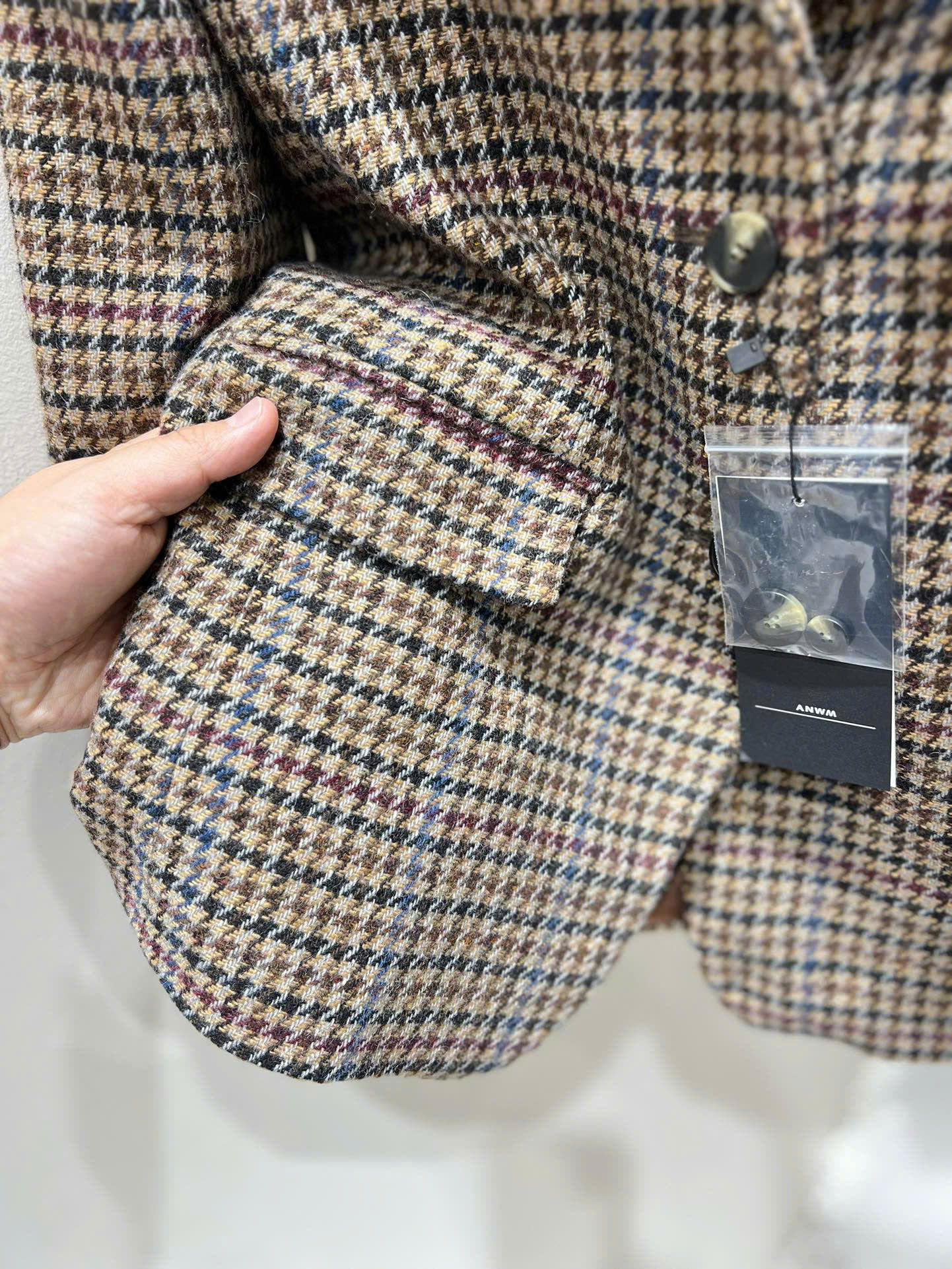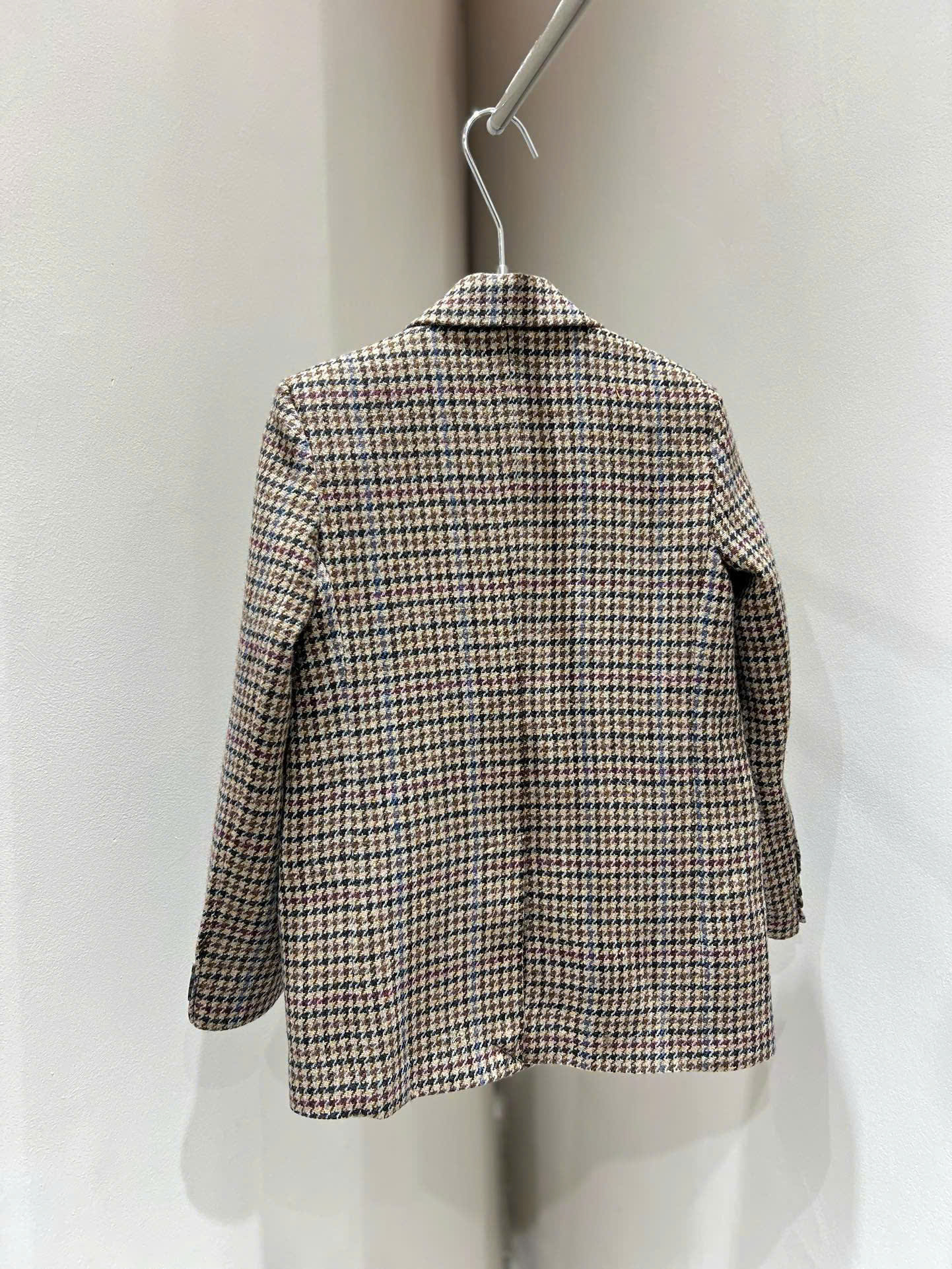 Áo khoác len Sandro dệt kim 2 hàng khuy viền trắng cổ tròn