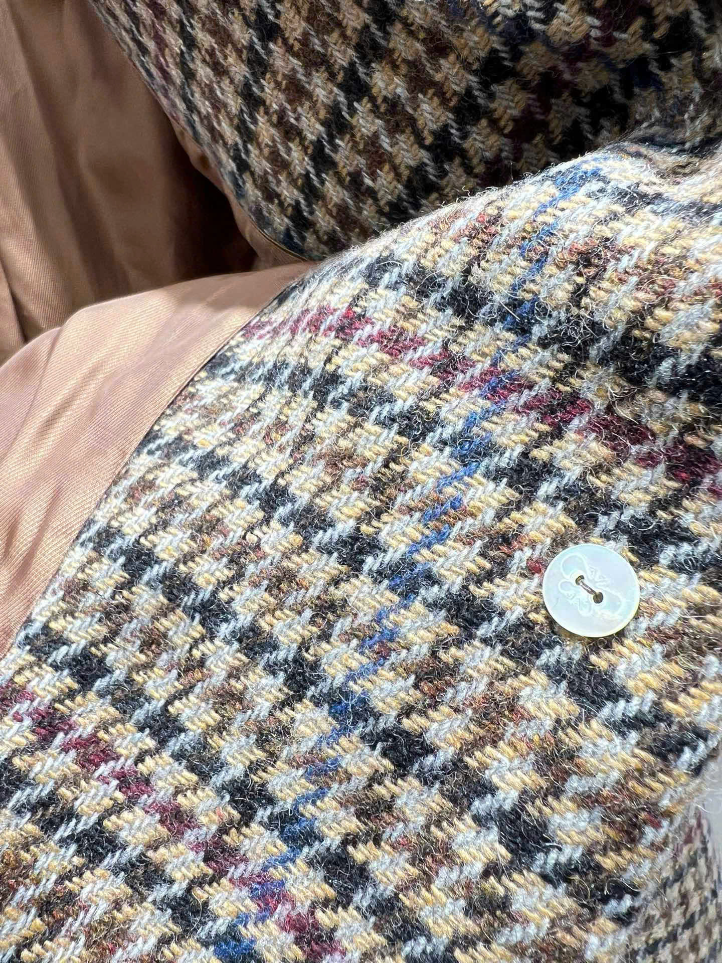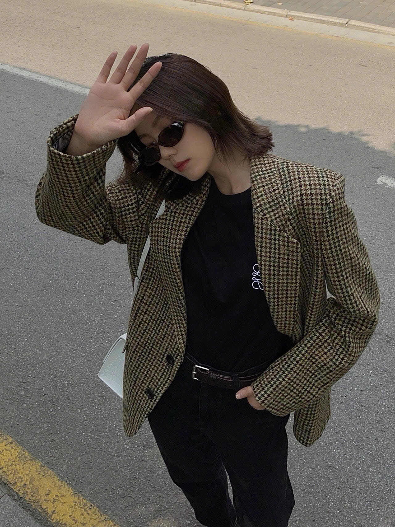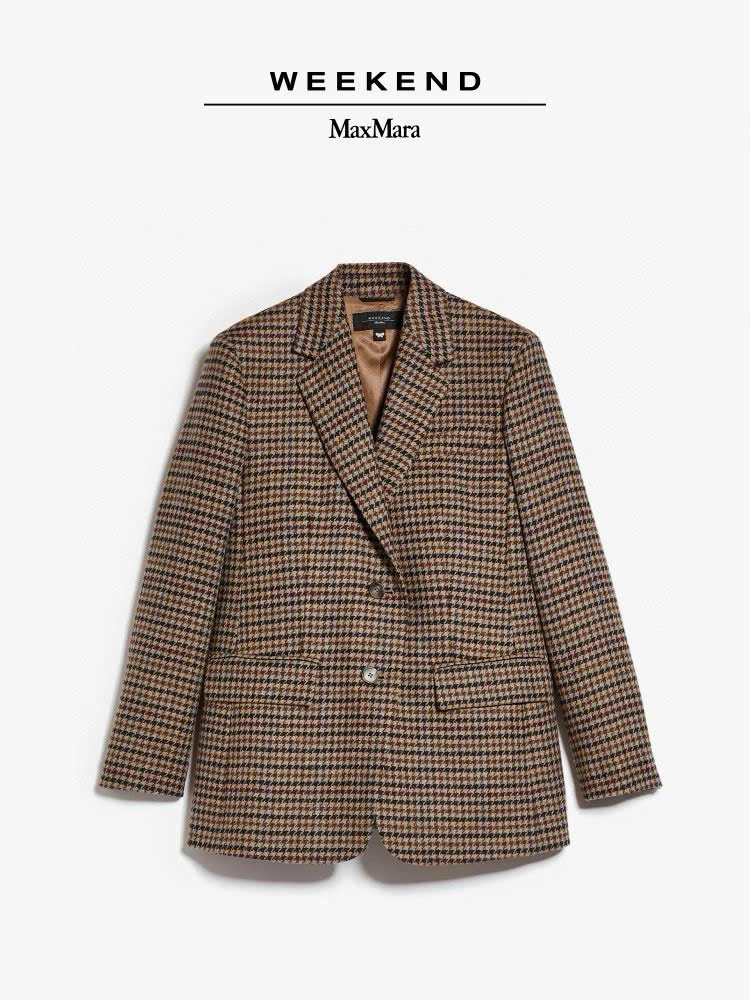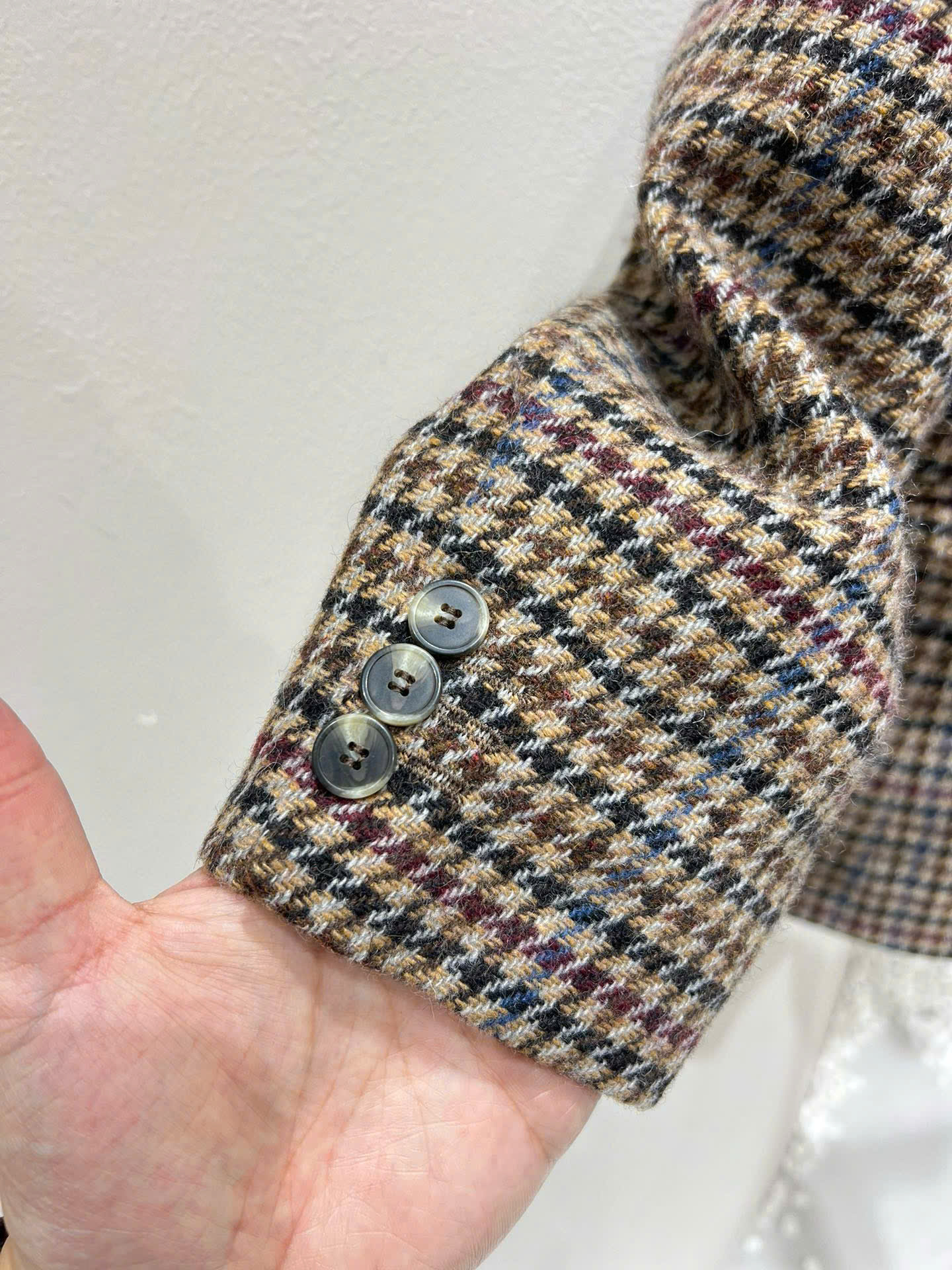 Áo khoác len Sandro dệt kim 2 hàng khuy viền trắng cổ tròn