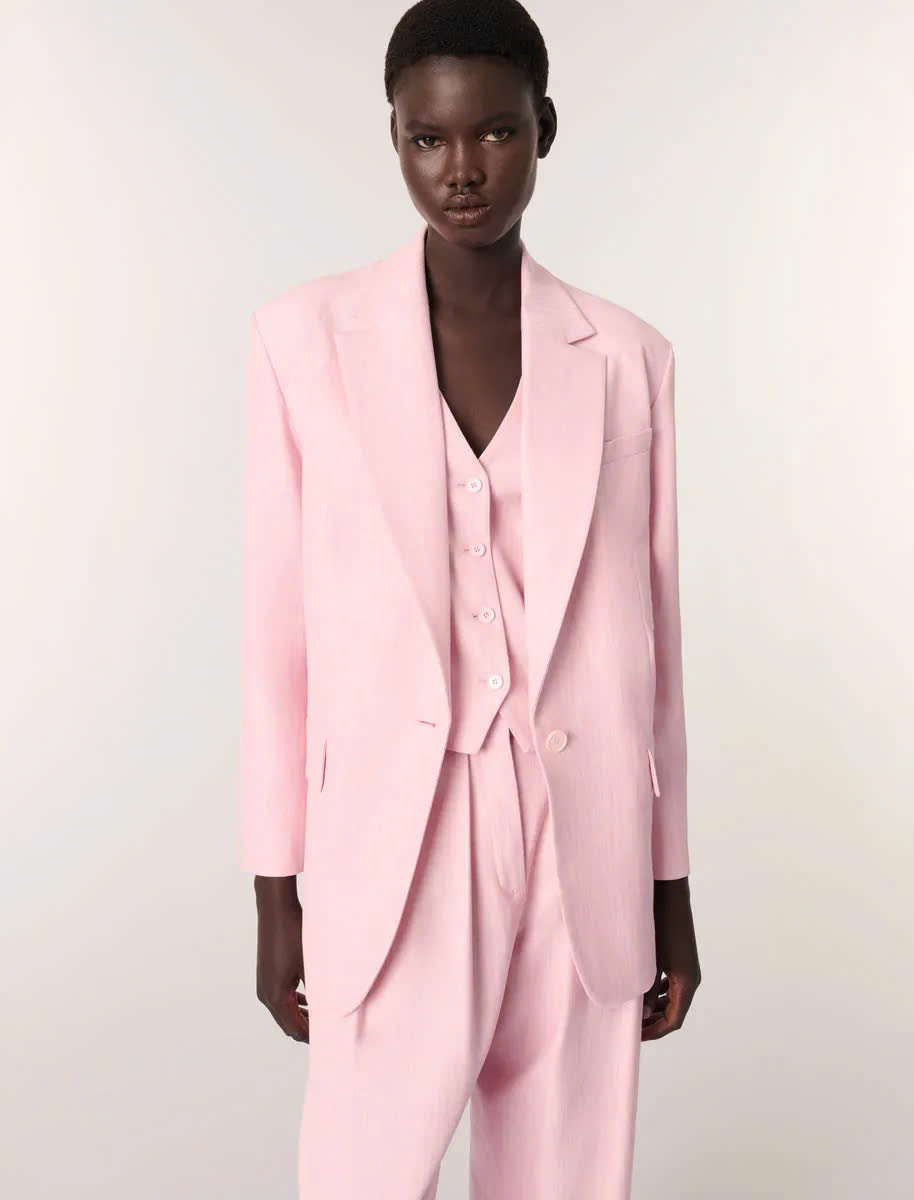 •Áo vest •Cổ áo có ve •Vai có đệm •Túi ngực •2 túi nắp •Cài nút •Lớp lót kiểu satin Maje