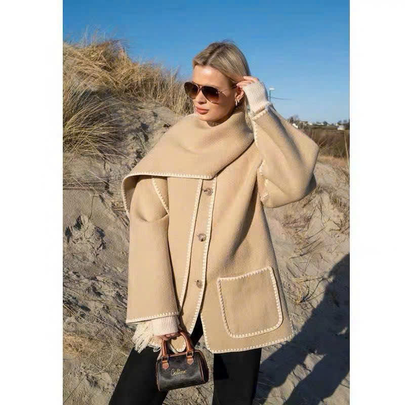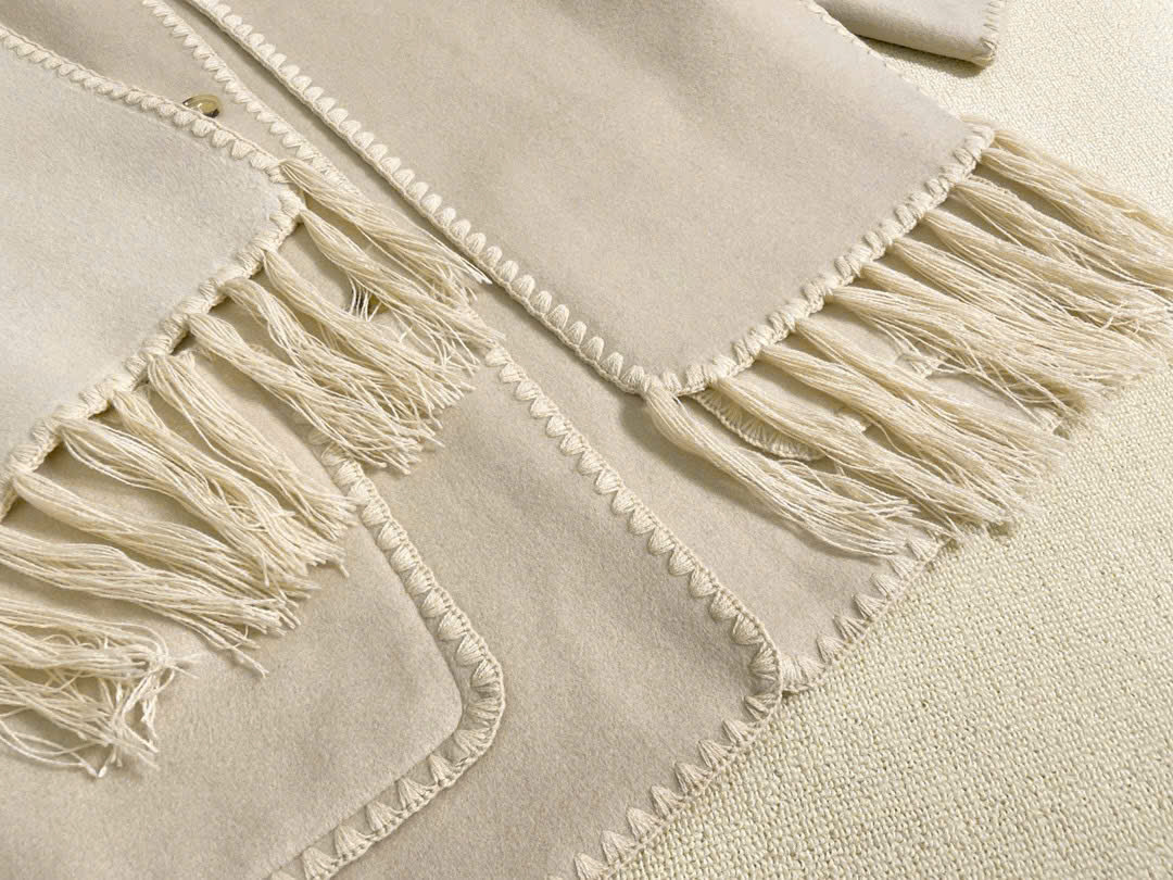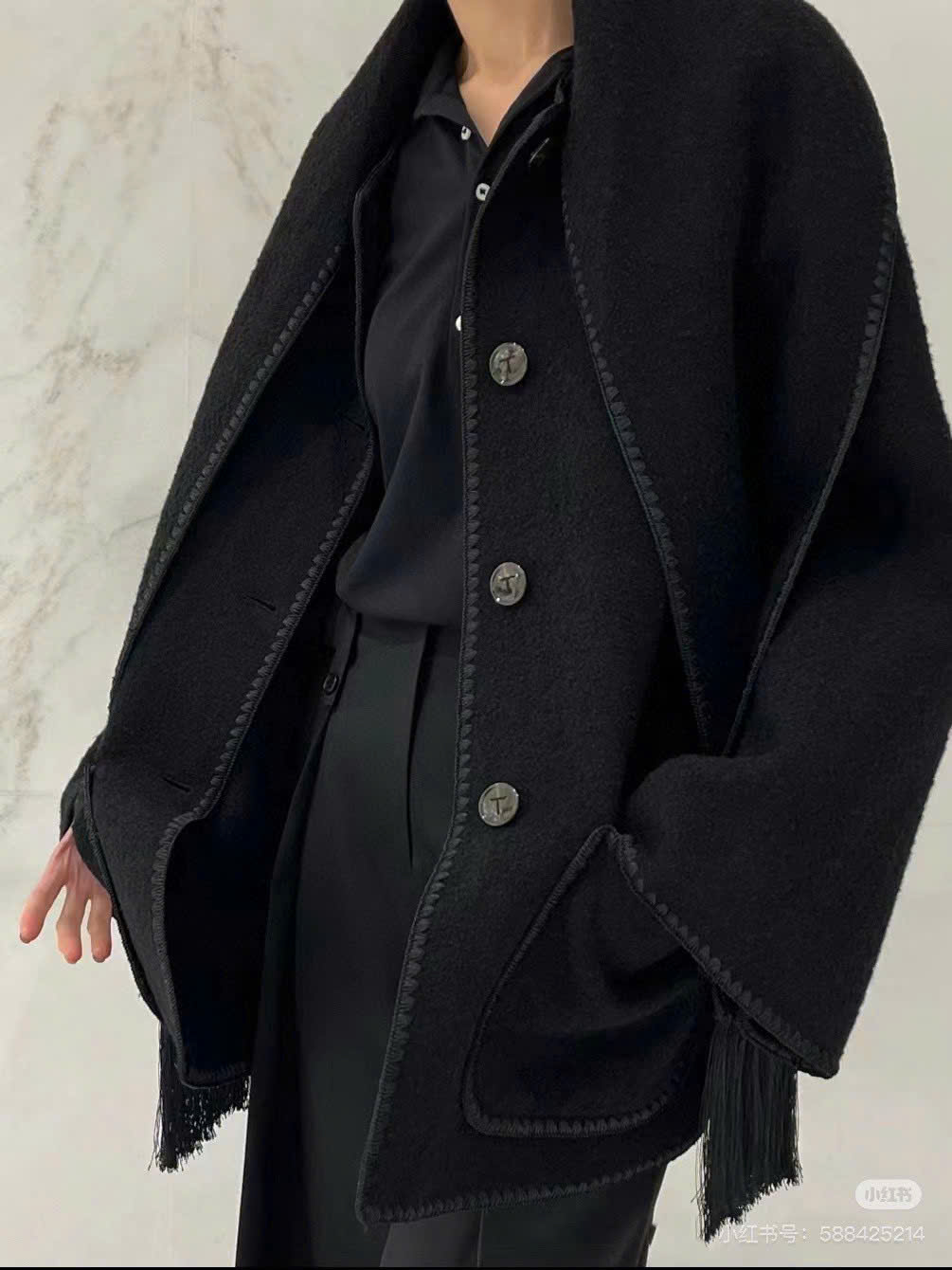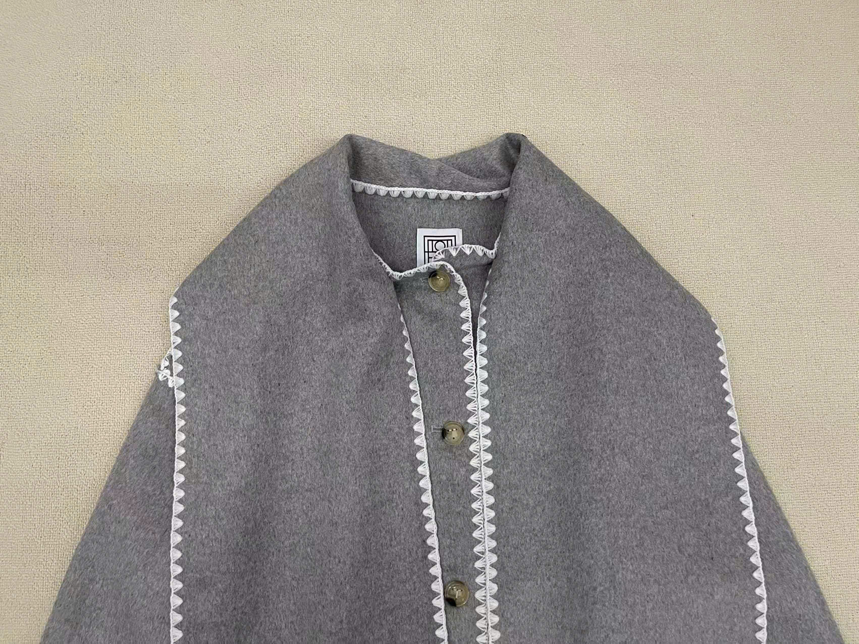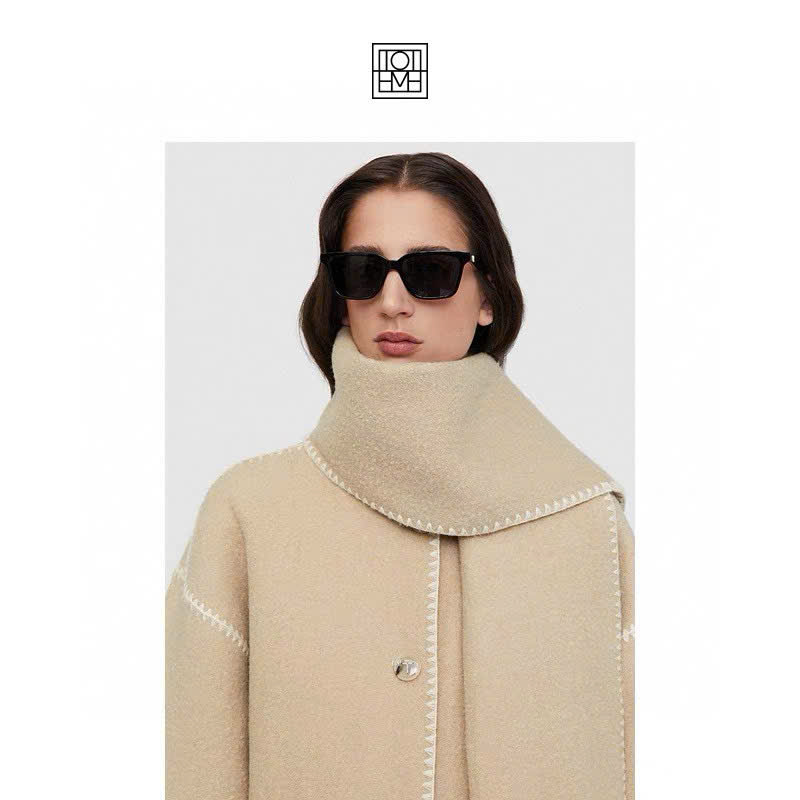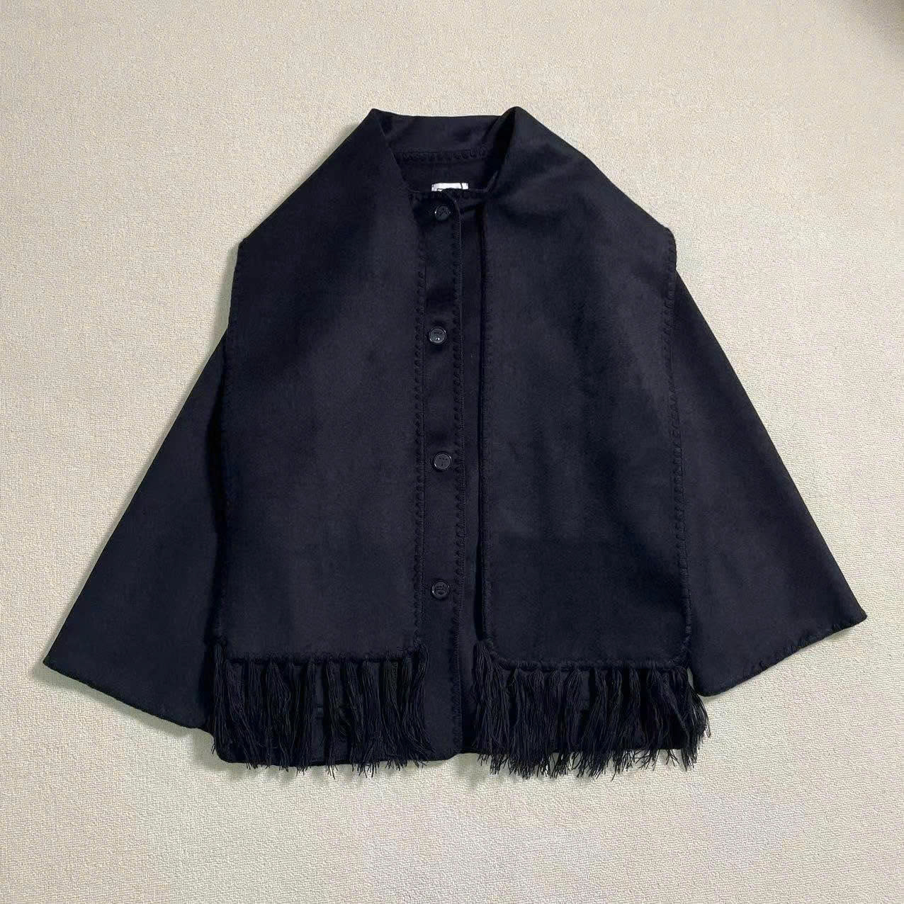 Cape dạ TOTEME choàng kèm khăn viền trắng tua rua