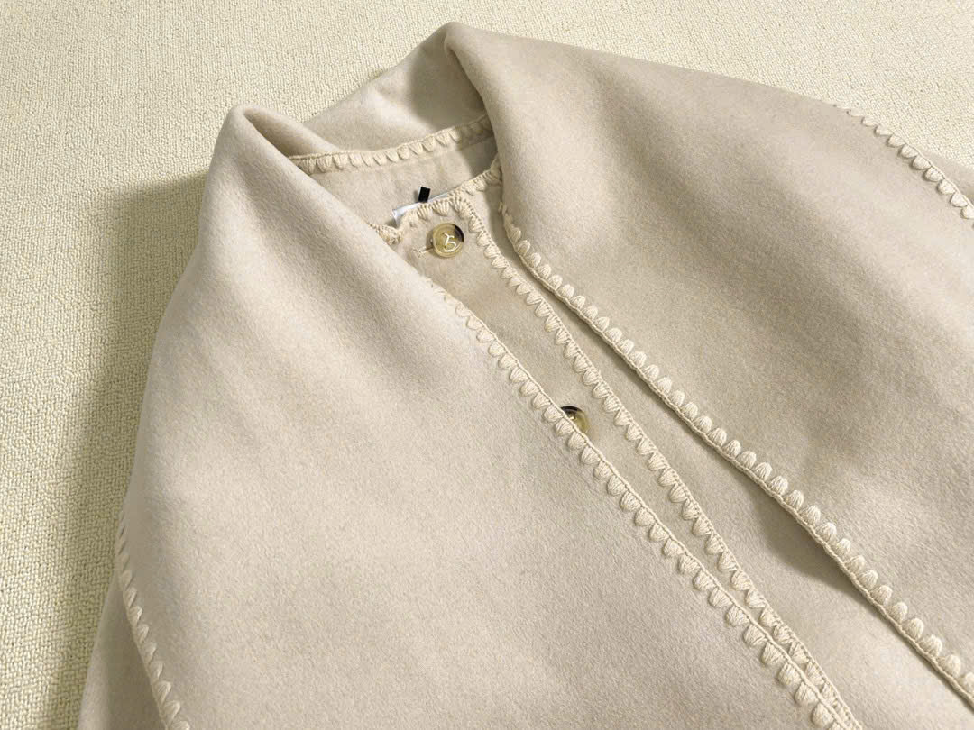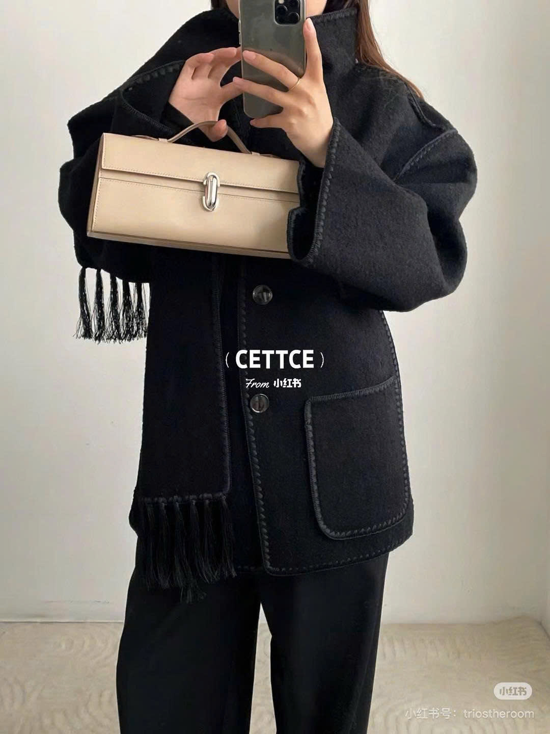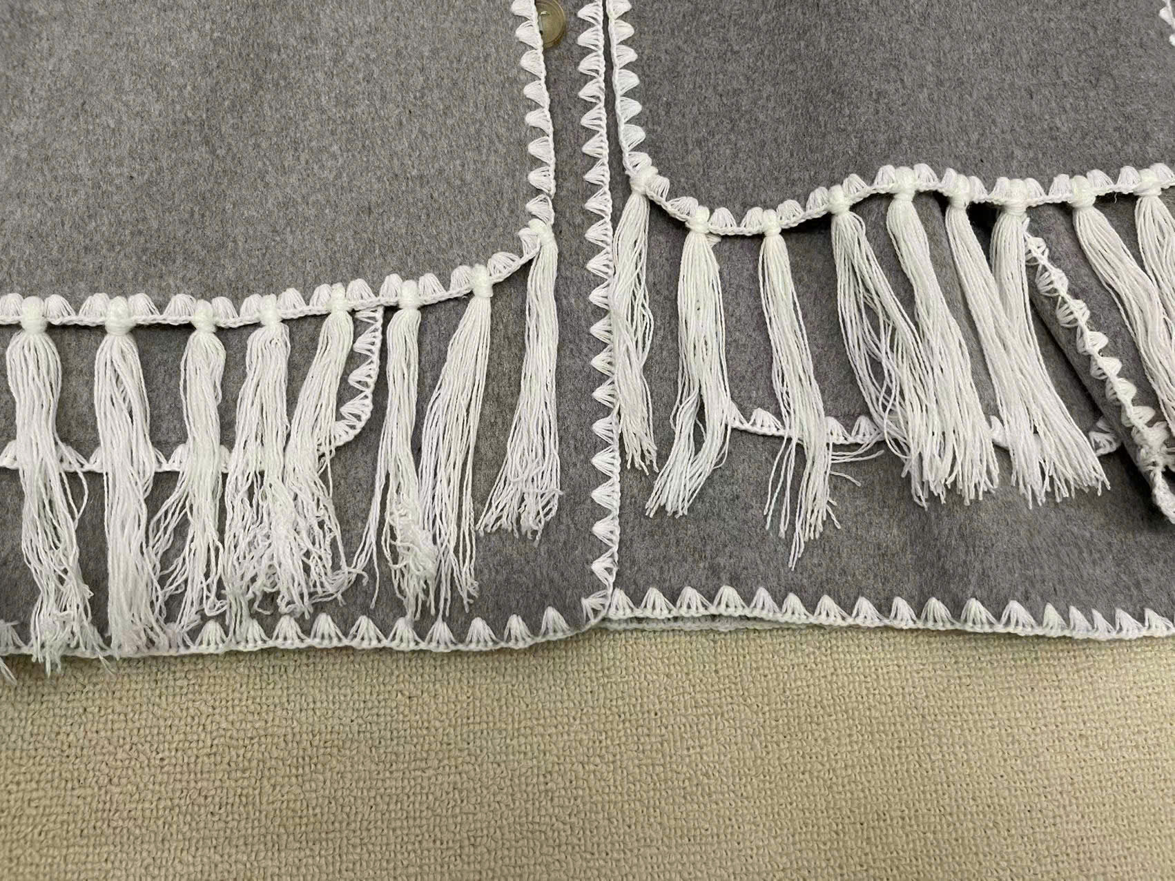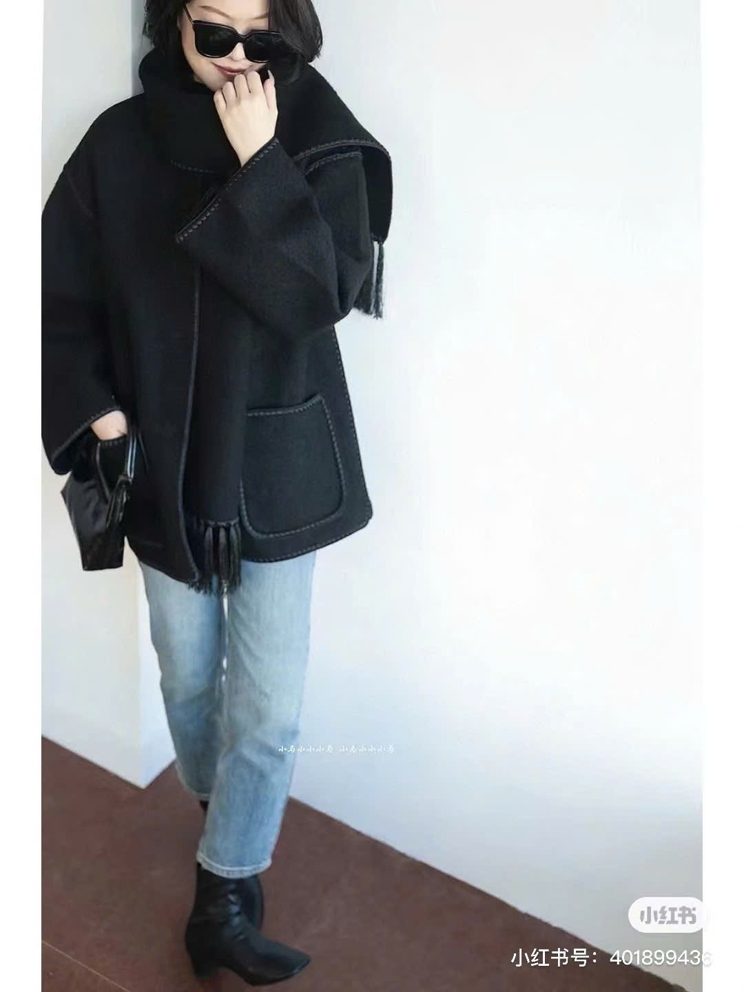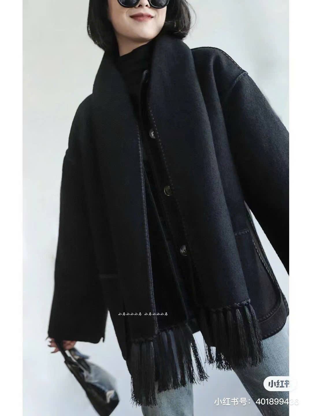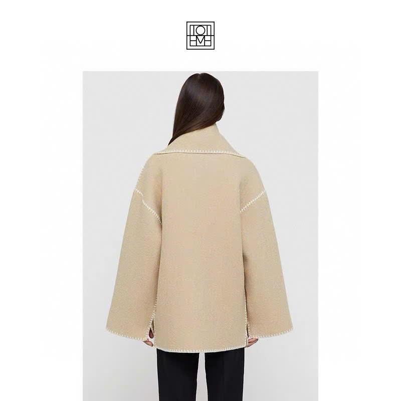 Cape dạ TOTEME choàng kèm khăn viền trắng tua rua