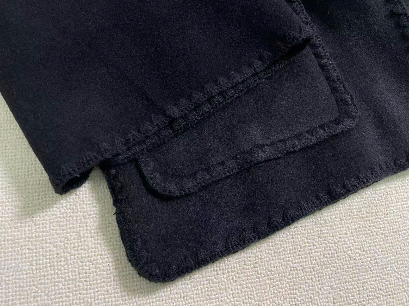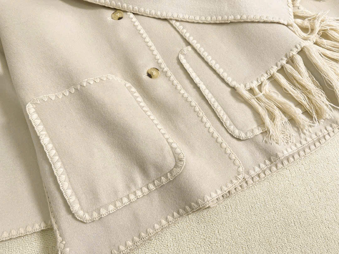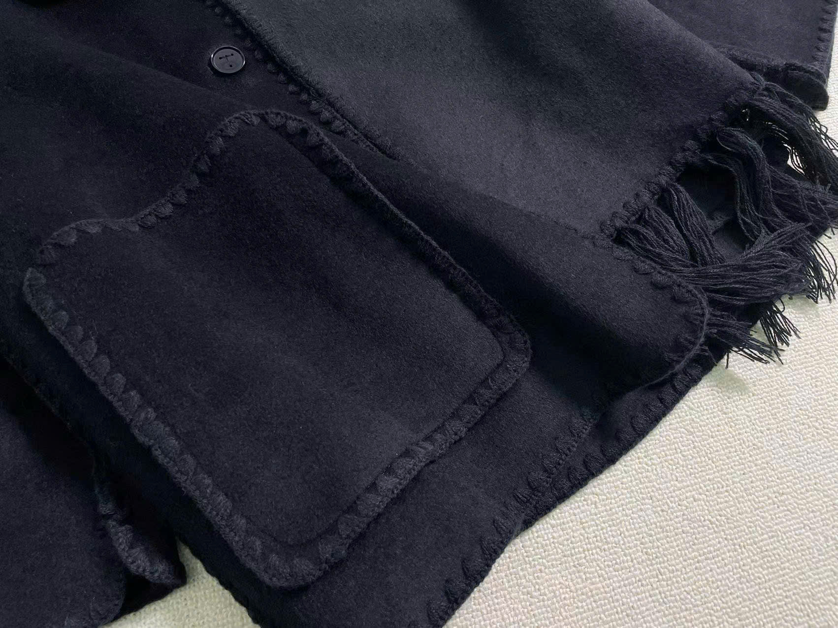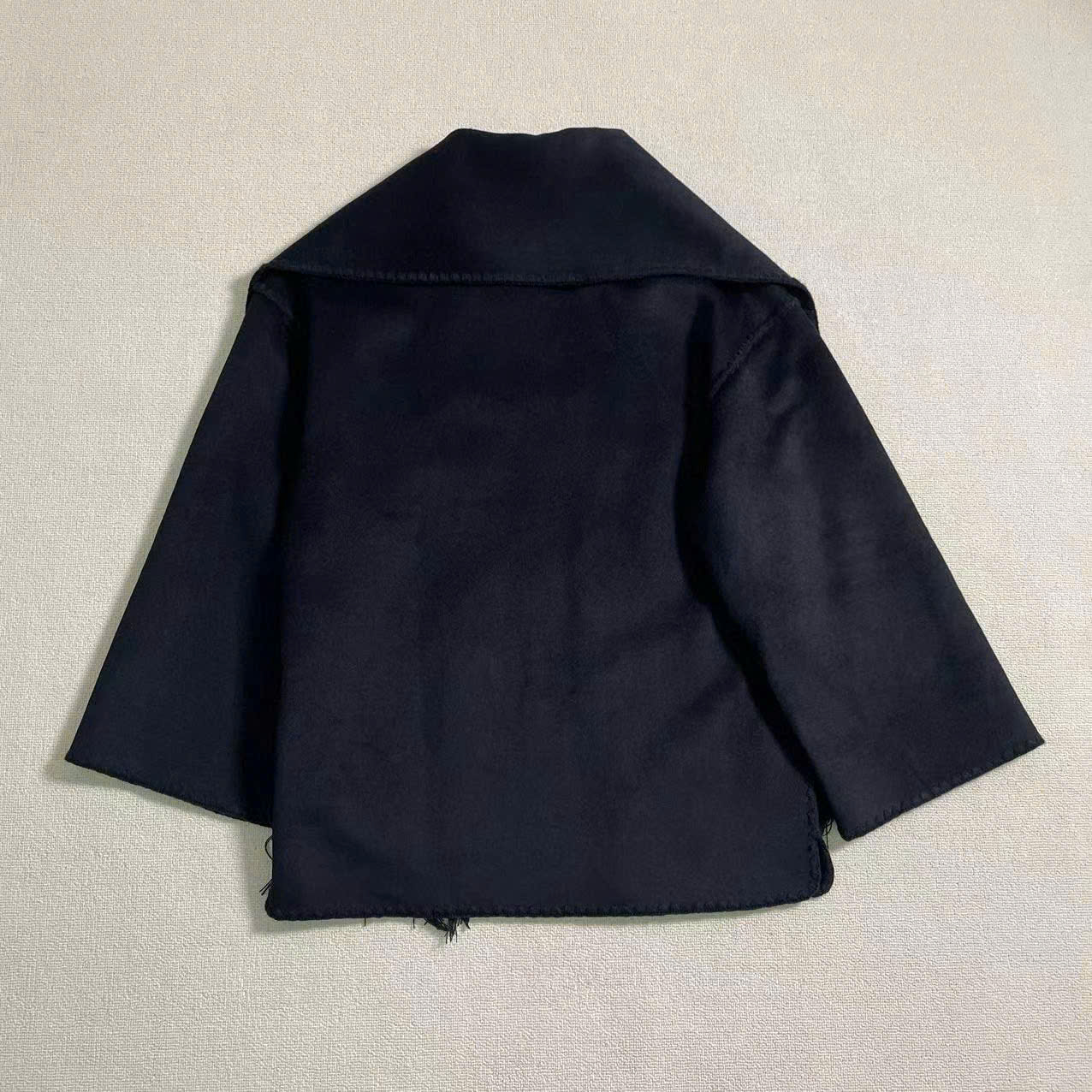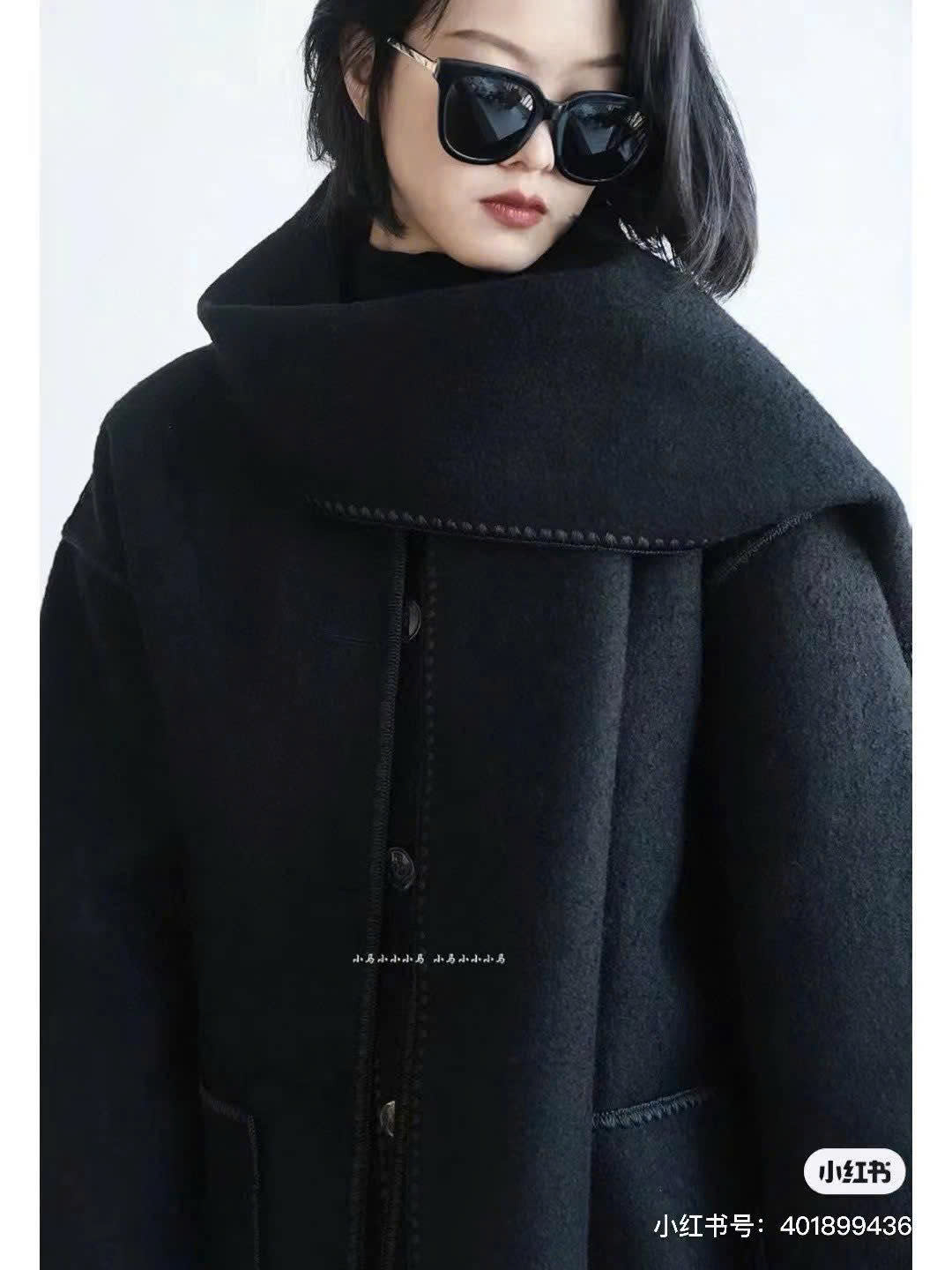 Cape dạ TOTEME choàng kèm khăn viền trắng tua rua