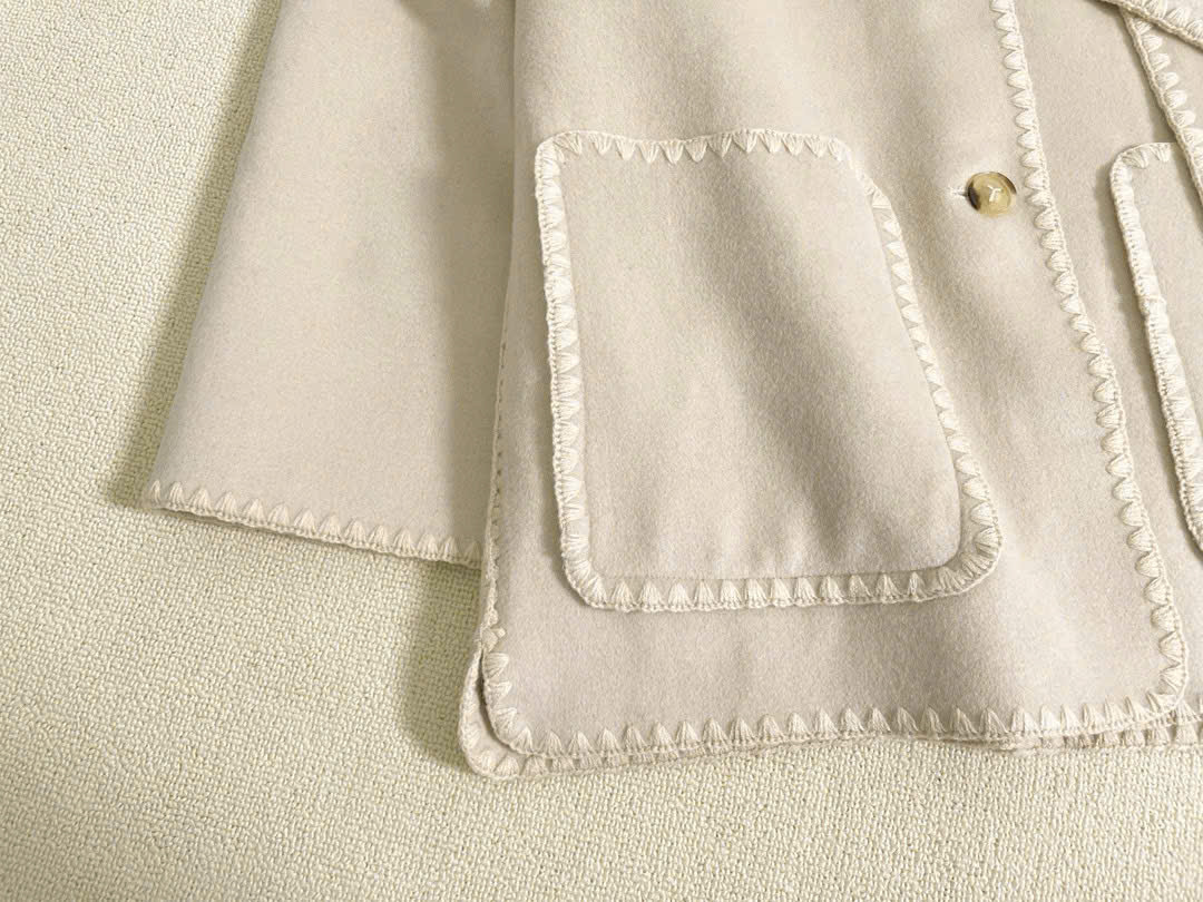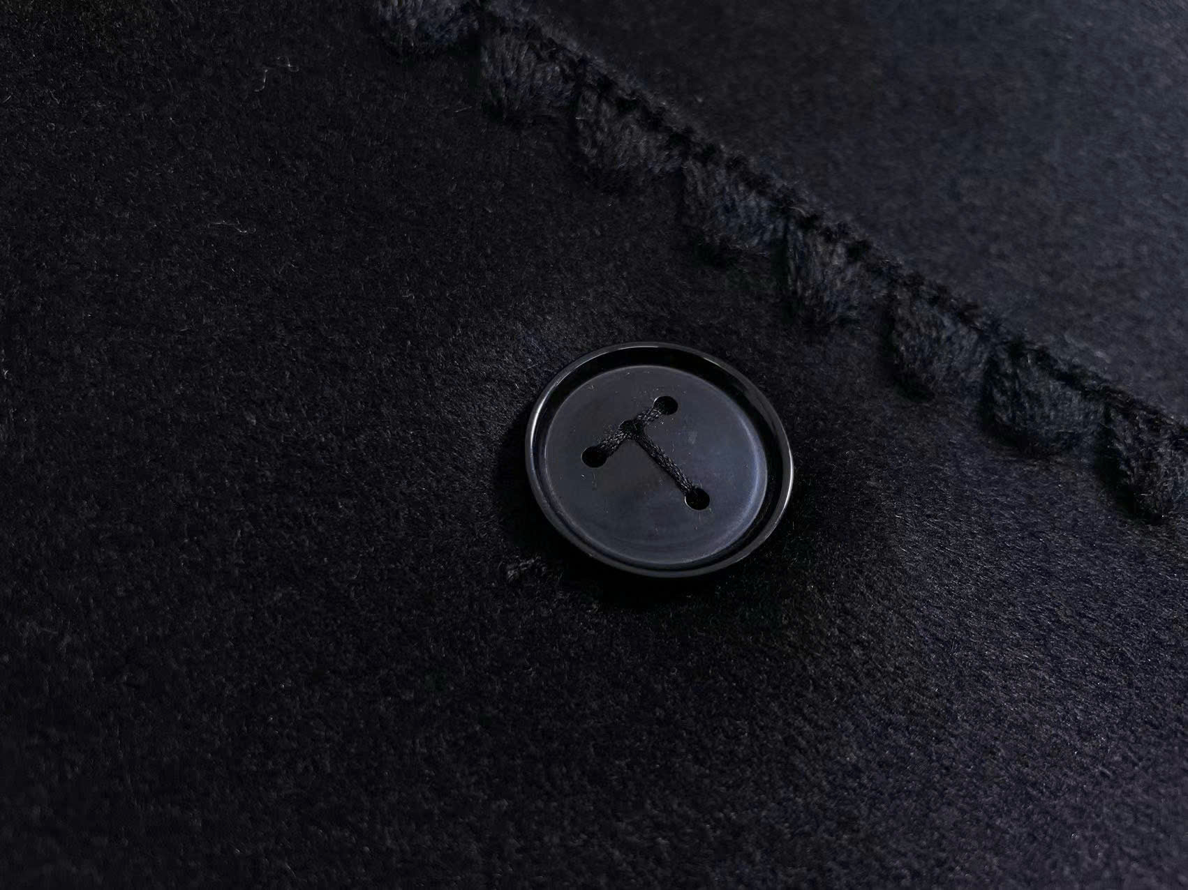 Áo khoác len Sandro dệt kim 2 hàng khuy viền trắng cổ tròn