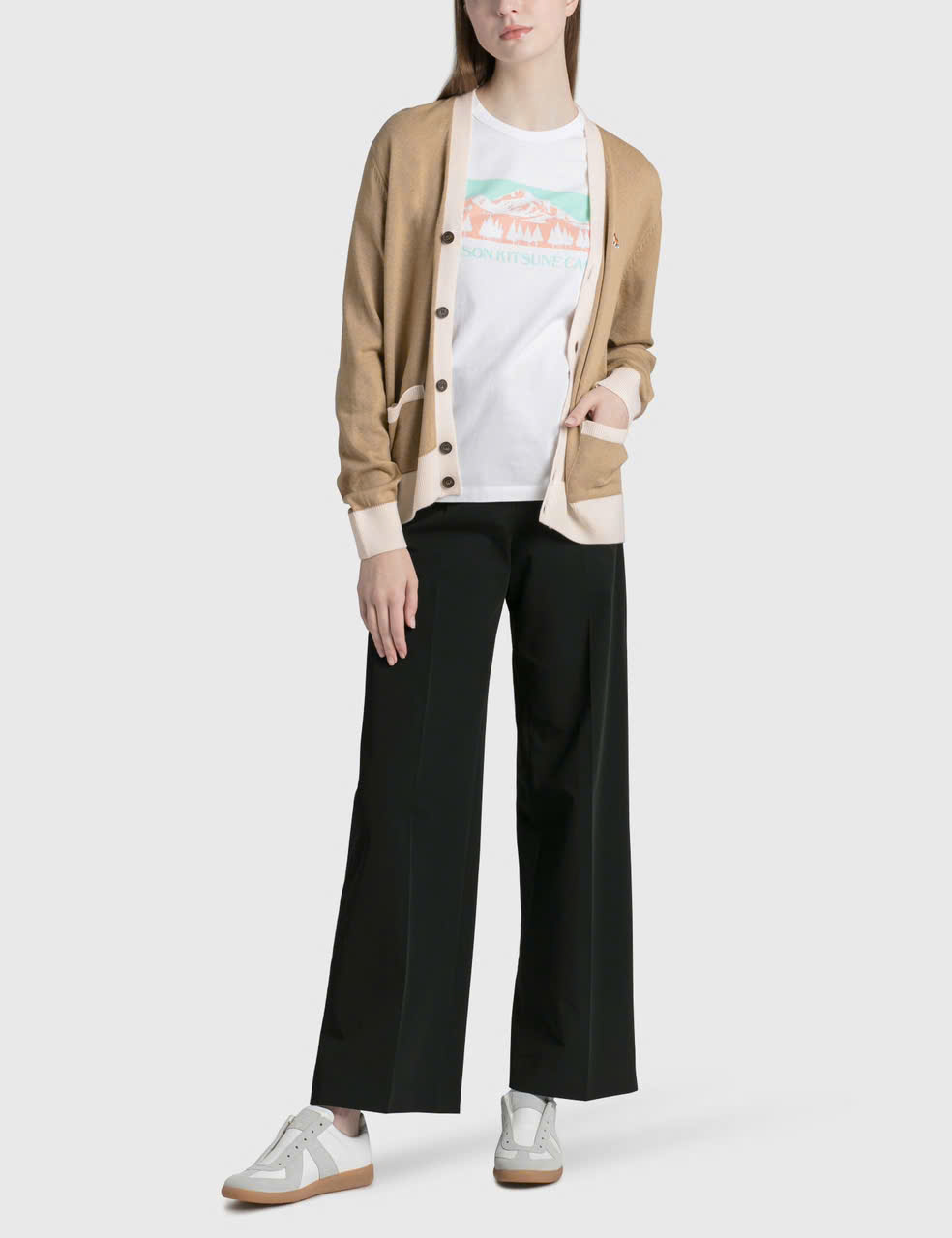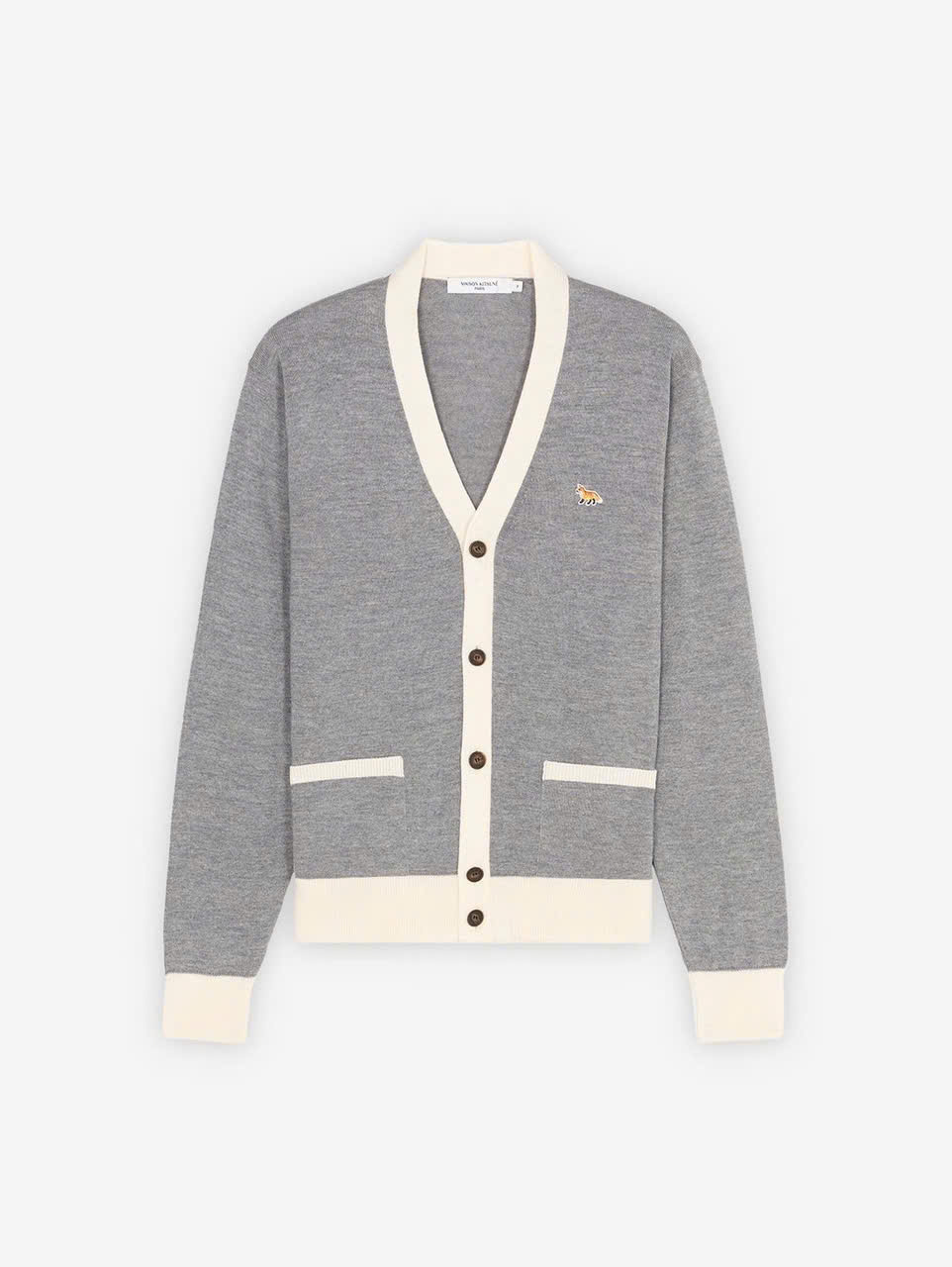 Áo khoác len cardigan cổ điển hai màu Baby Fox Patch Áo len cardigan có khuy cài tương phản Miếng vá Baby Fox ở ngực Nút đóng Túi trước Các đường gân tương phản ở vạt áo, cổ tay áo và viền áo Chất liệu: 100% len