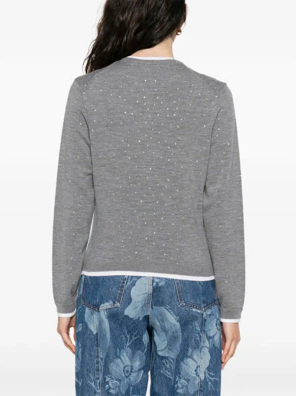 Điểm nổi bật -Màu xám thạch nam -Cài nút phía trước -Viền tương phản -Cổ tròn -Tay dài