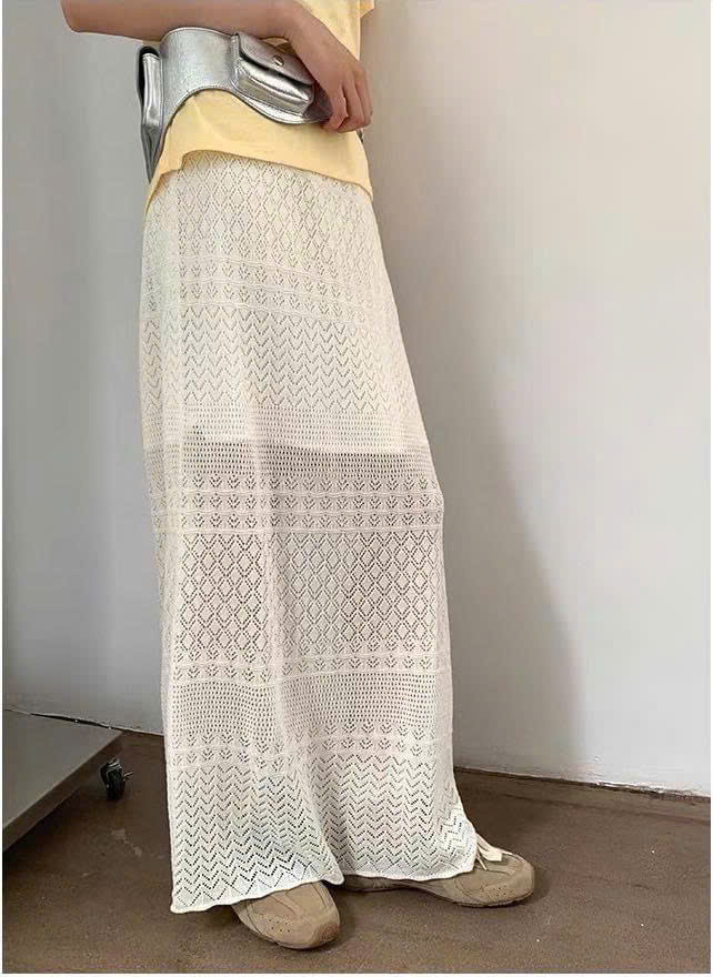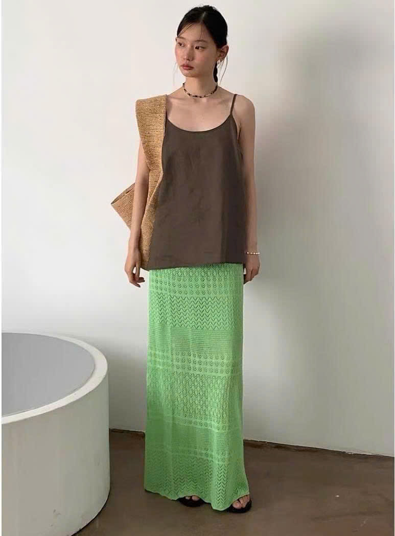 Set Áo cardigan đan/Chân váy midi có đường xẻ