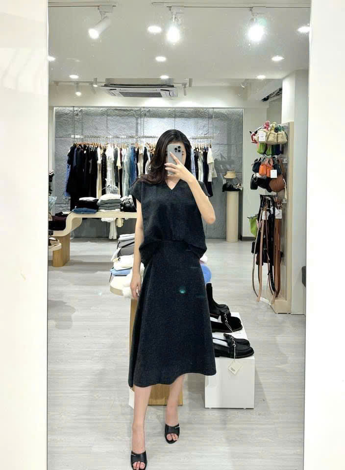 Chân váy midi COS len mtg màu tàn dáng A (tách set)