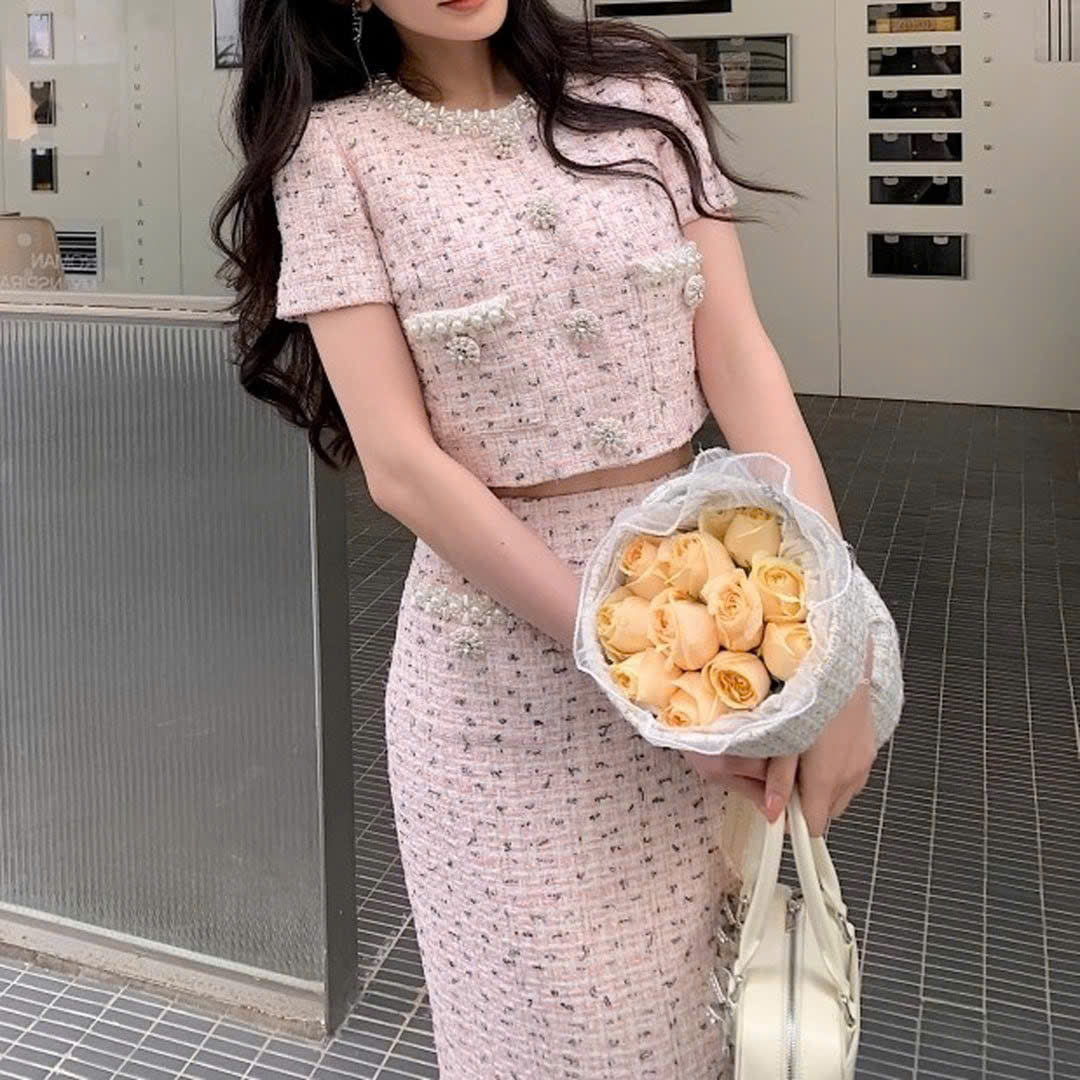 Dễ dàng phối đồ theo phong cách sang trọng hay giản dị, chiếc váy bouclé hồng này là một món đồ chủ đạo được nâng tầm với viền đính ngọc trai. Kết hợp với áo phông cho phong cách thường ngày thanh lịch hoặc thêm một chiếc áo cùng tông cho buổi tối sang trọng. Kiểu dáng vừa vặn Kiểu này có độ co giãn tối thiểu Khóa kéo ở phía sau Nút trang trí