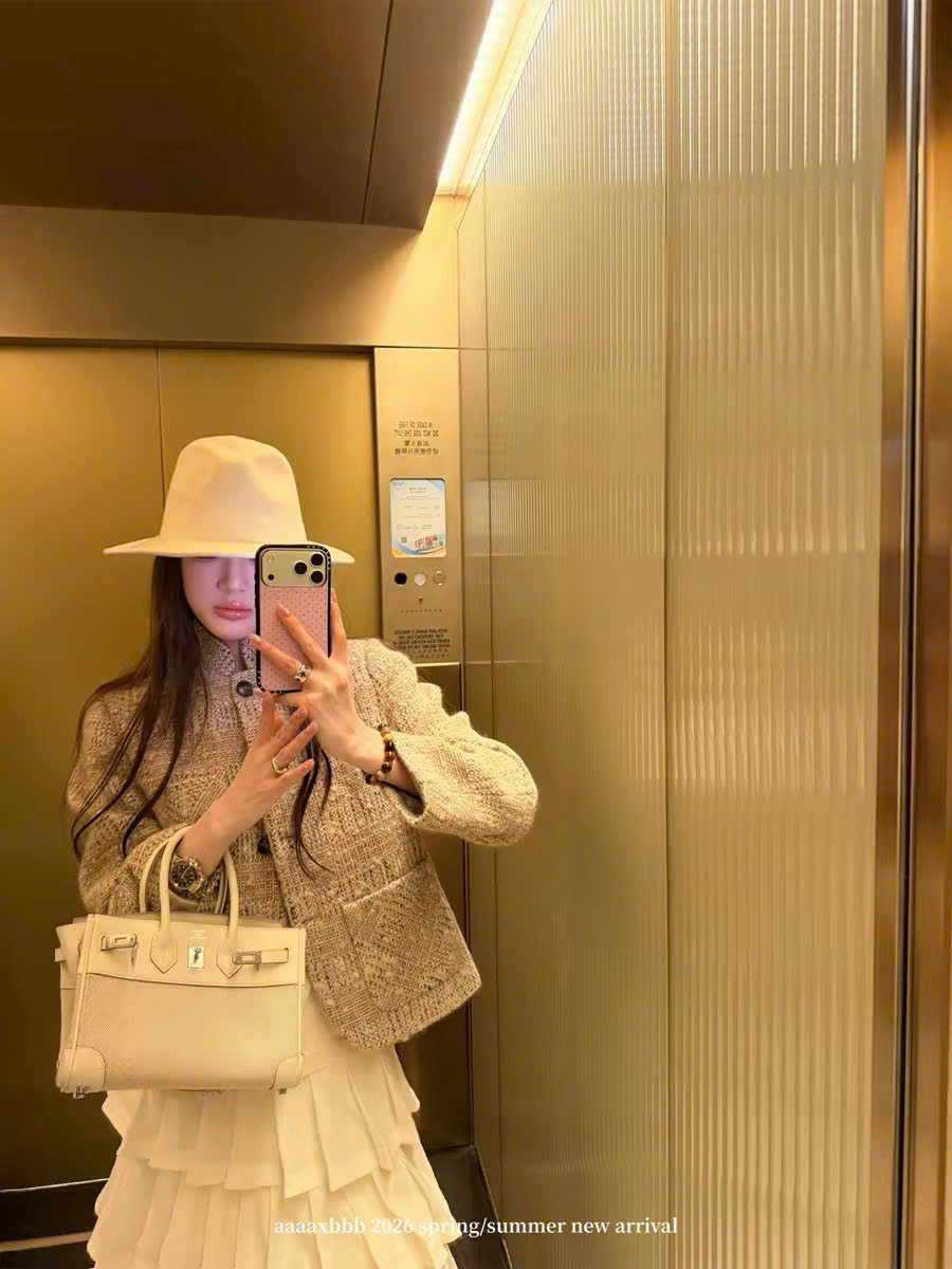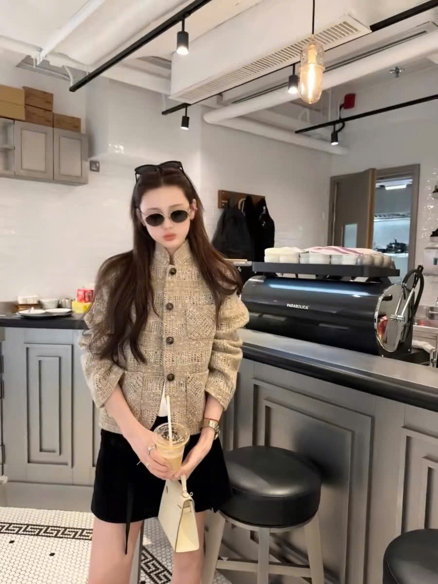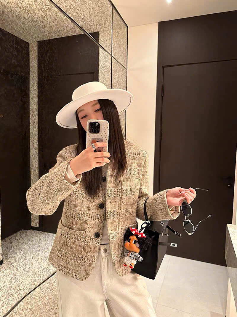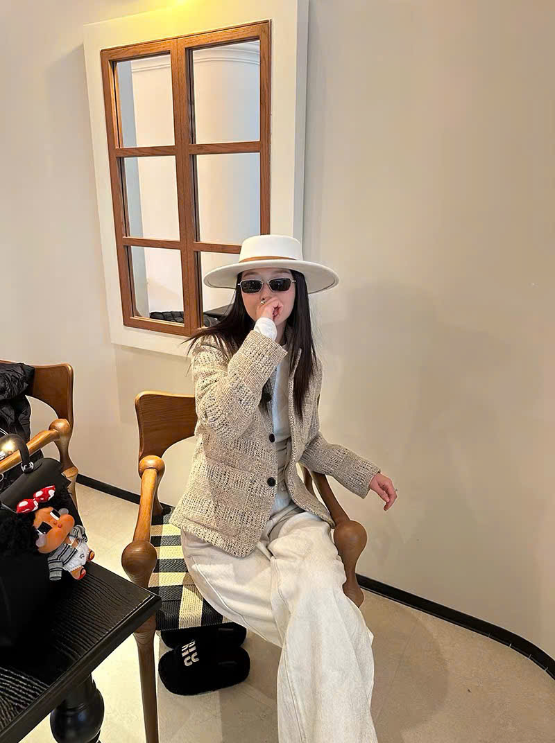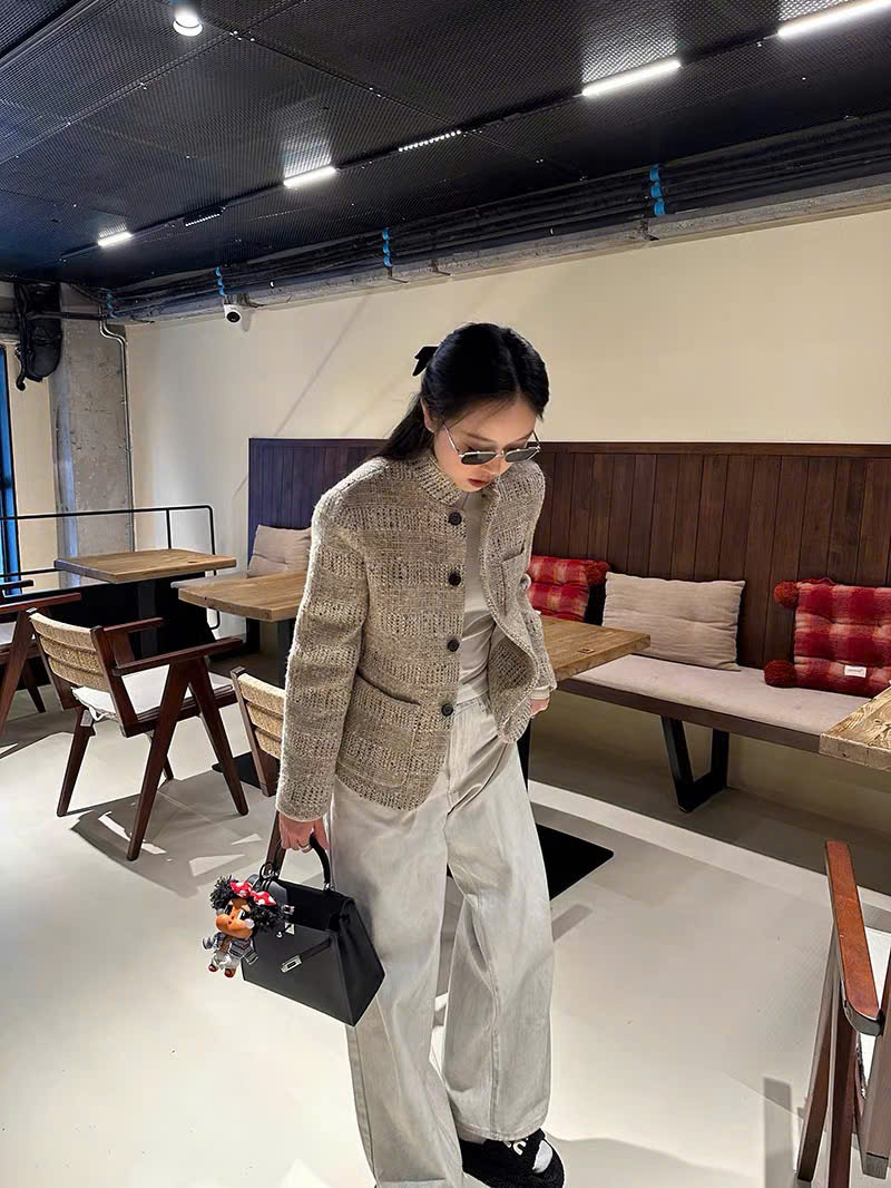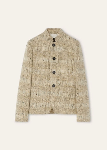 Cổ đứng ; túi vá; túi vé ; cài khuy một hàng; khuy sừng; xẻ tà một bên; lót lụa; dáng regular fit; chất liệu vải tweed . Thành phần: 80% len nguyên chất, 11% sợi microfiber, 6% viscose, 2% lanh, 1% cotton.