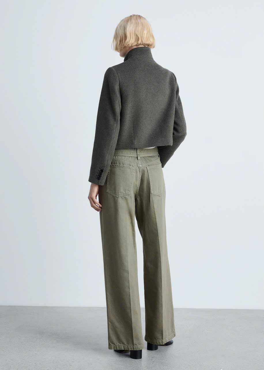Áo khoác len Sandro dệt kim 2 hàng khuy viền trắng cổ tròn