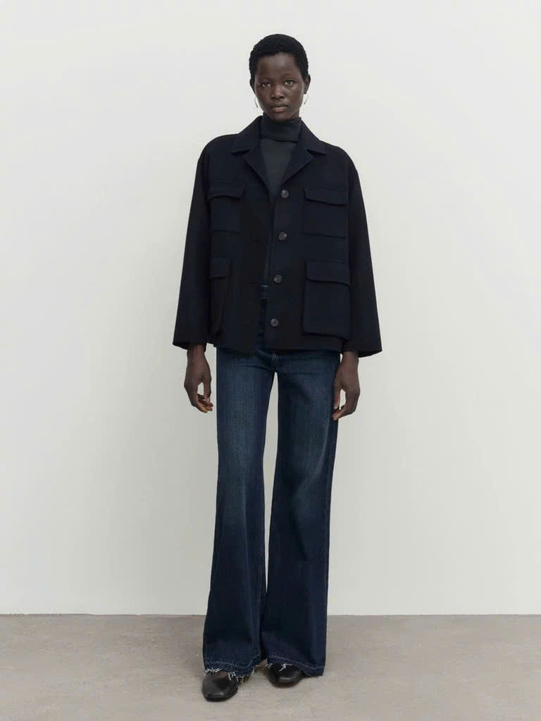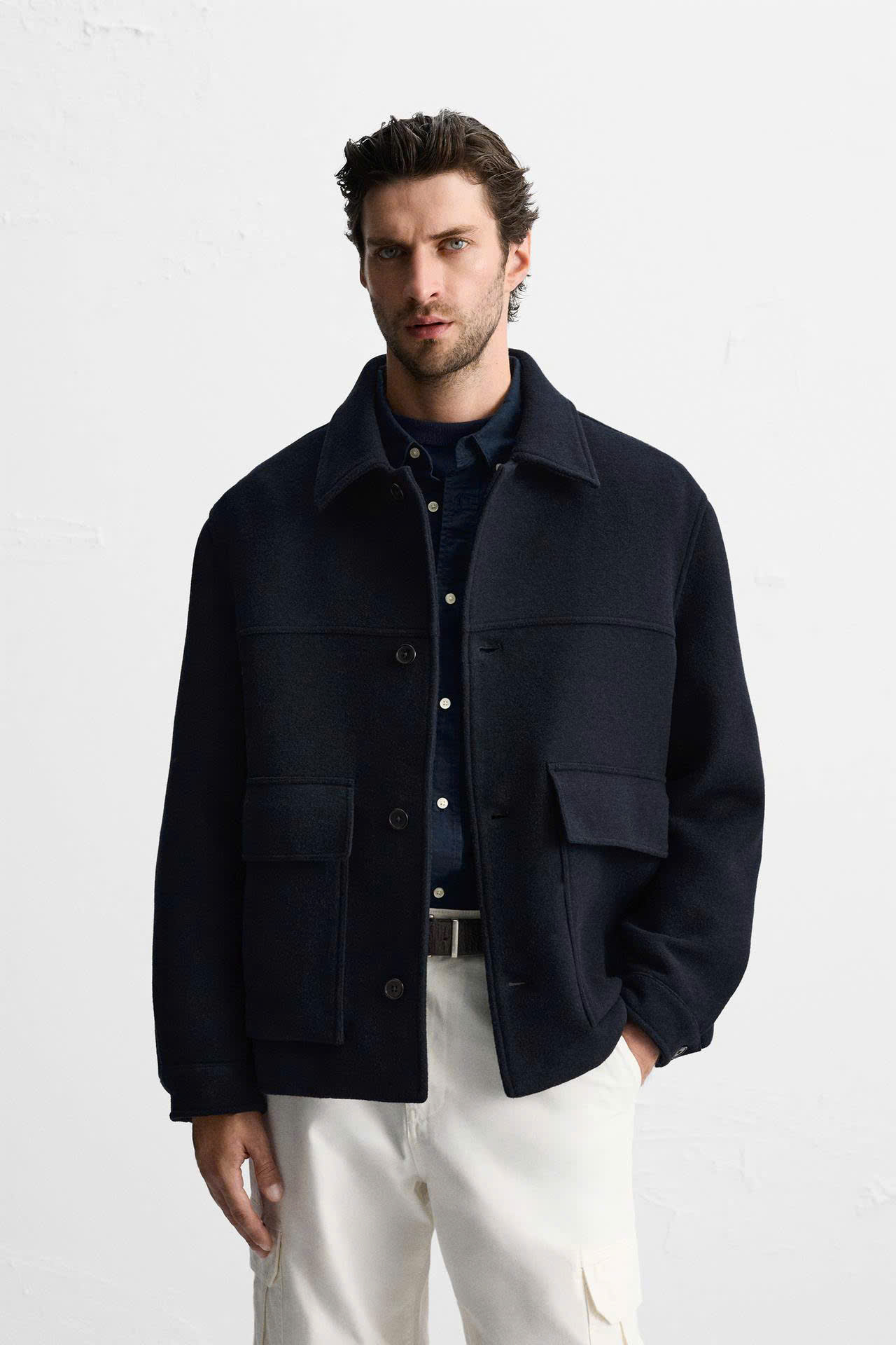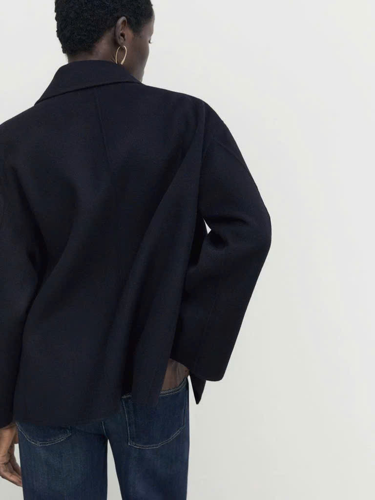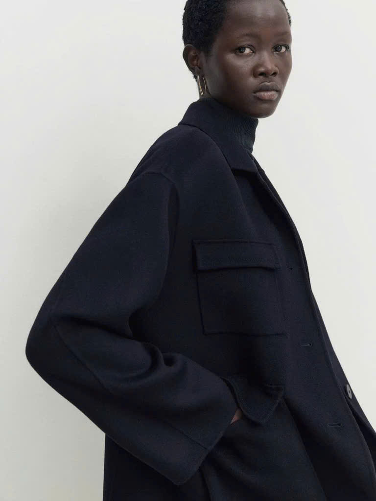 Áo khoác làm từ hỗn hợp len. Tay áo dài có vòng tay có khuy. Cổ áo sơ mi. Cài nút phía trước. Len kép: Len hai lớp có đường may ẩn, mềm mại và dễ chịu khi chạm vào..