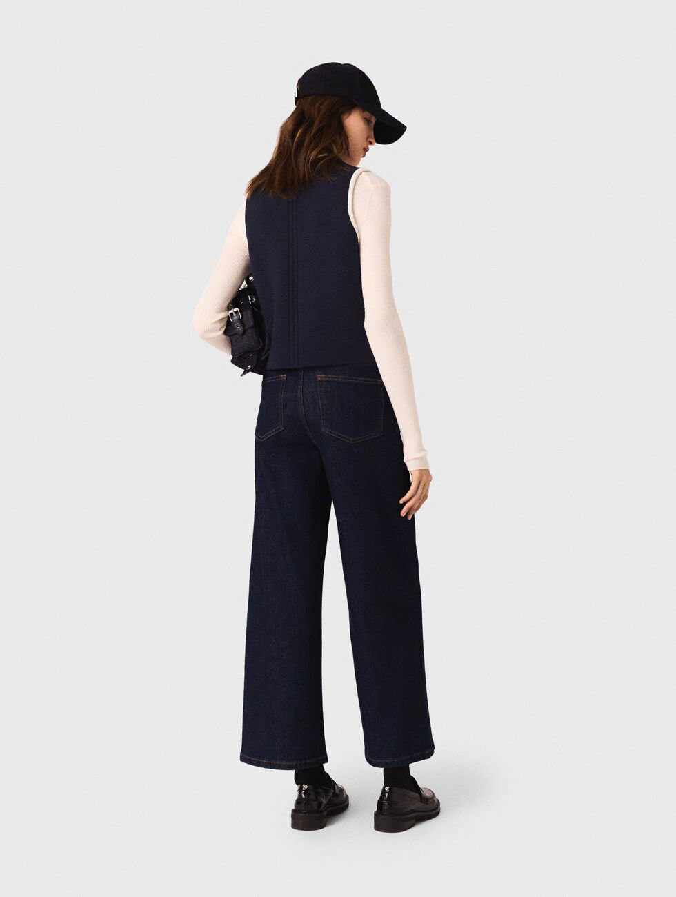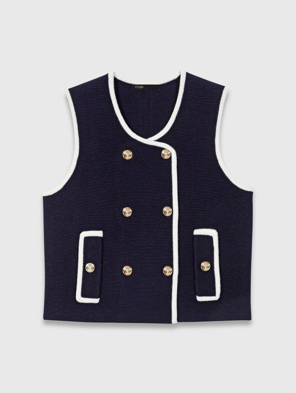 Áo không dệt kim có cấu trúc Nút vàng hai hàng khuy và ranh giới tương phản Cắt ngắn, cắt vừa